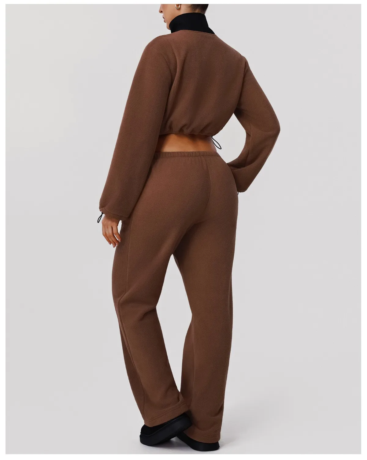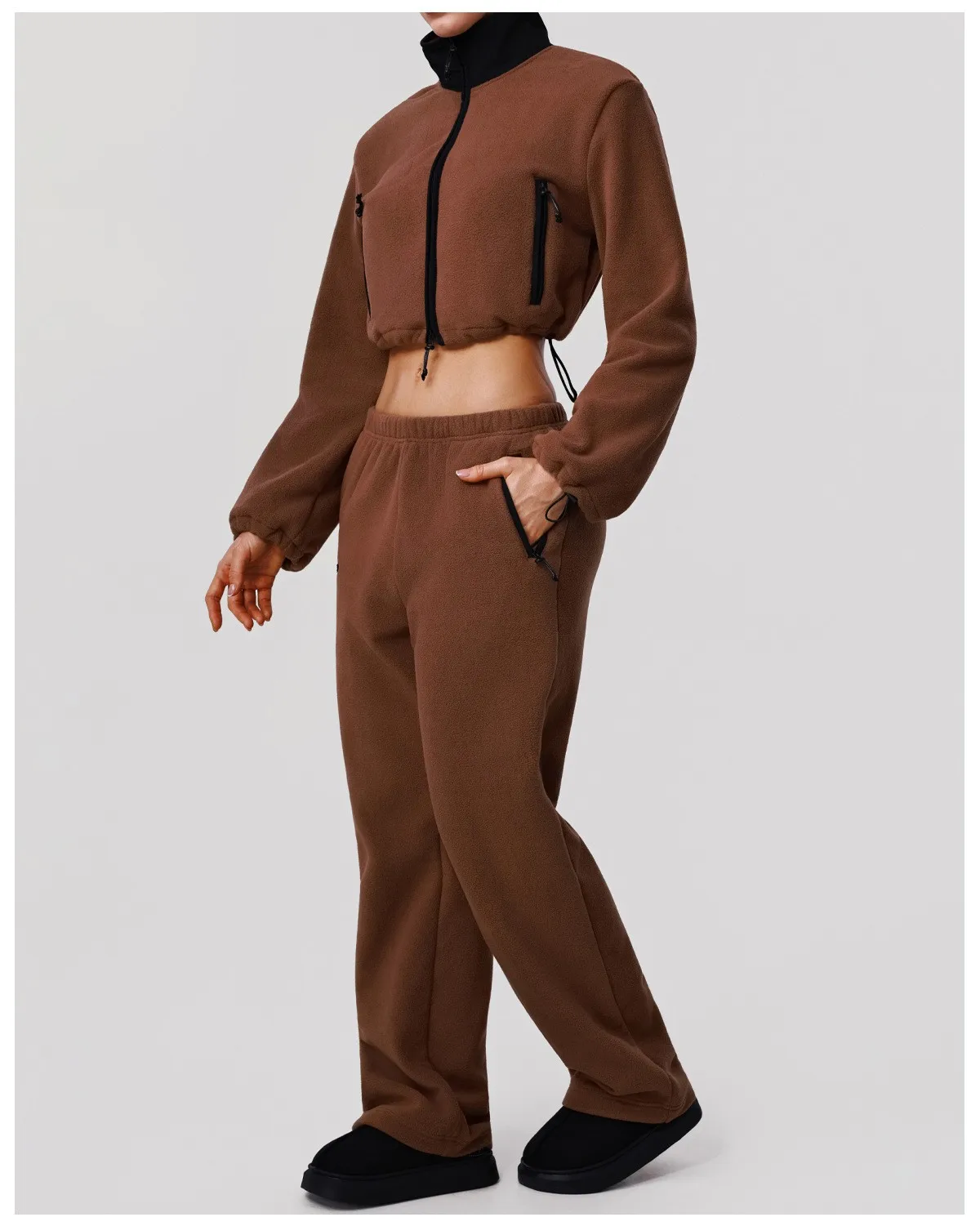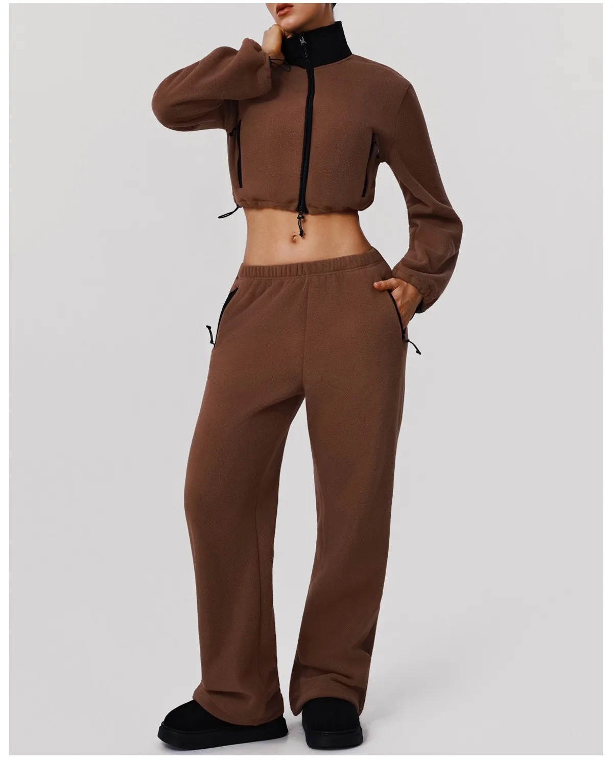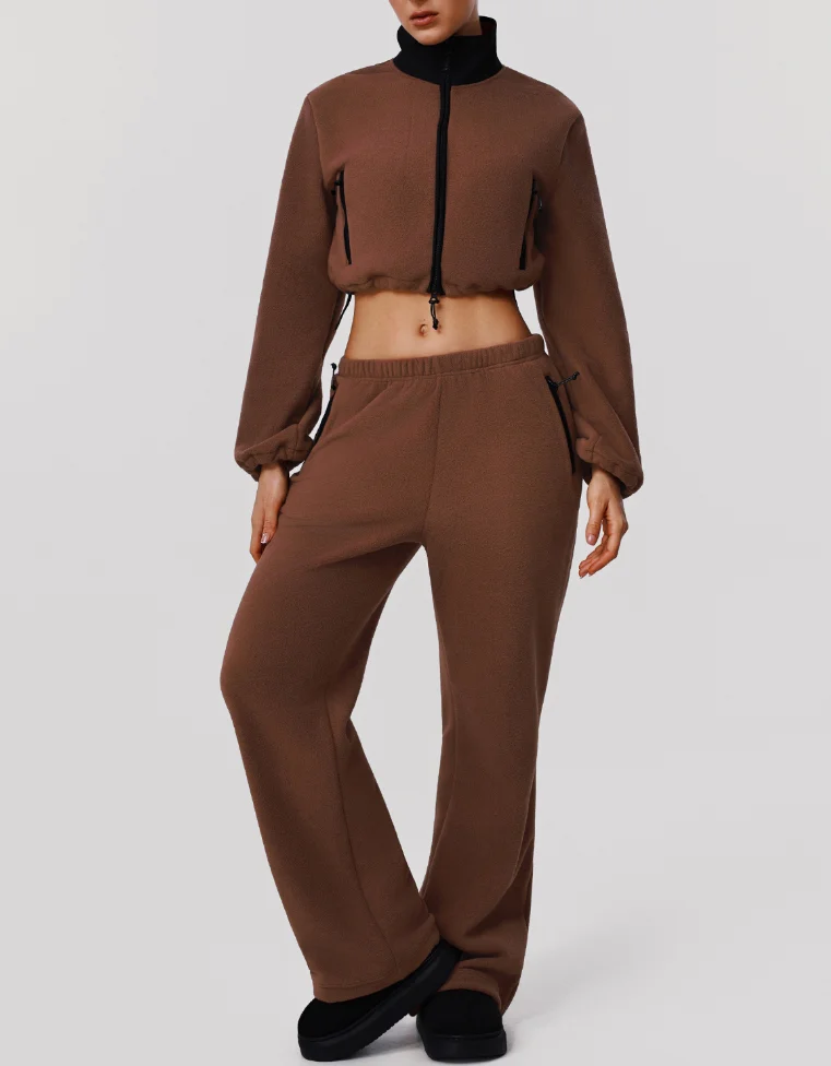 Winter Women Warm Zipper Crop Jacket Sweatshirt for Women Sport Loose Pants Fitness Women Yoga Two Pieces Set