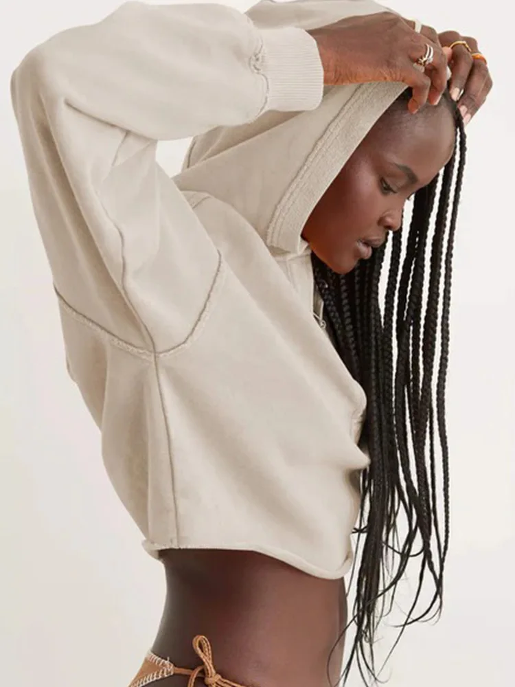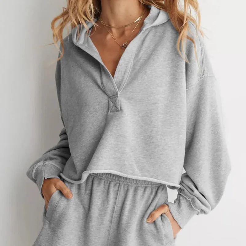 Oversize Womens Sports Cropped Sweatshirt Loose Deep V Neck Hoodies Casual Long Sleeve Tshirt Workout Hooded Sweatshirt Tops