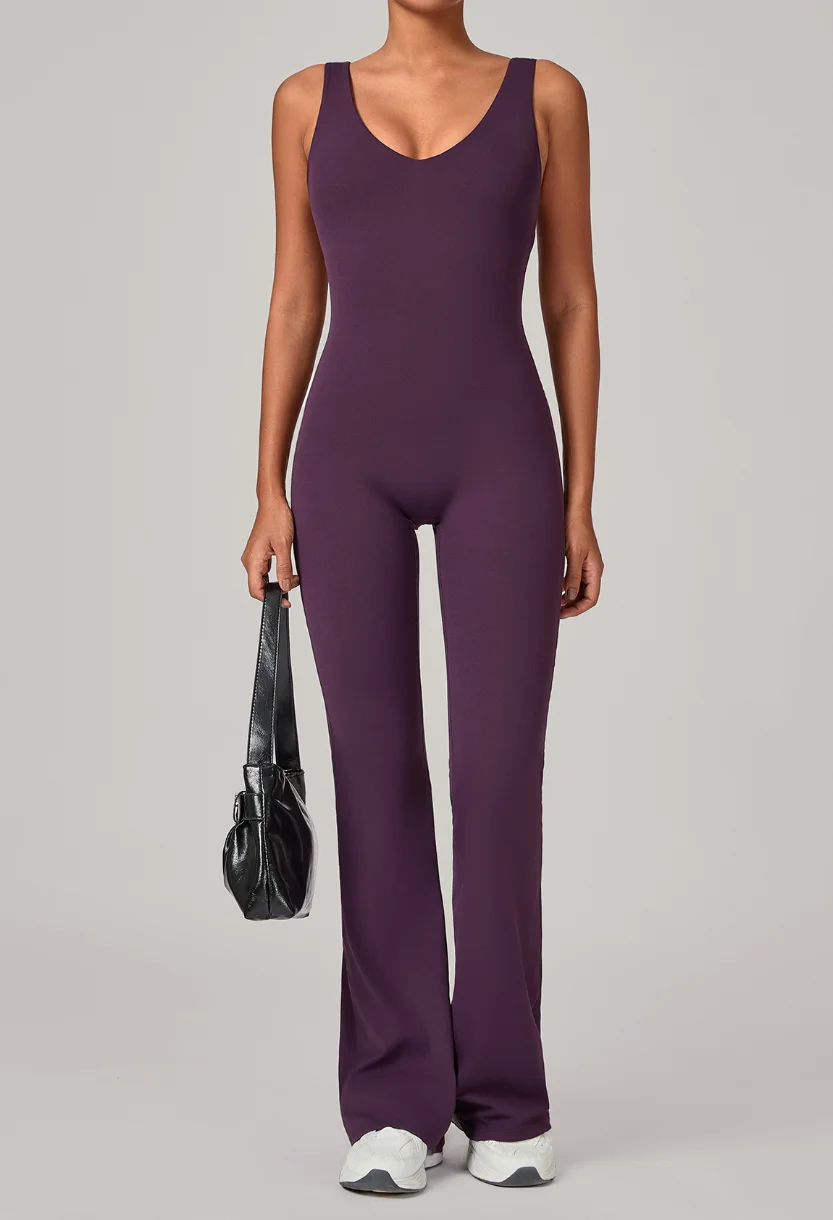 Customized One Piece Design Yoga Bodysuit Fitness Jumpsuit Backless Workout Suit Gym Outfit Flared Legging Jumpsuit