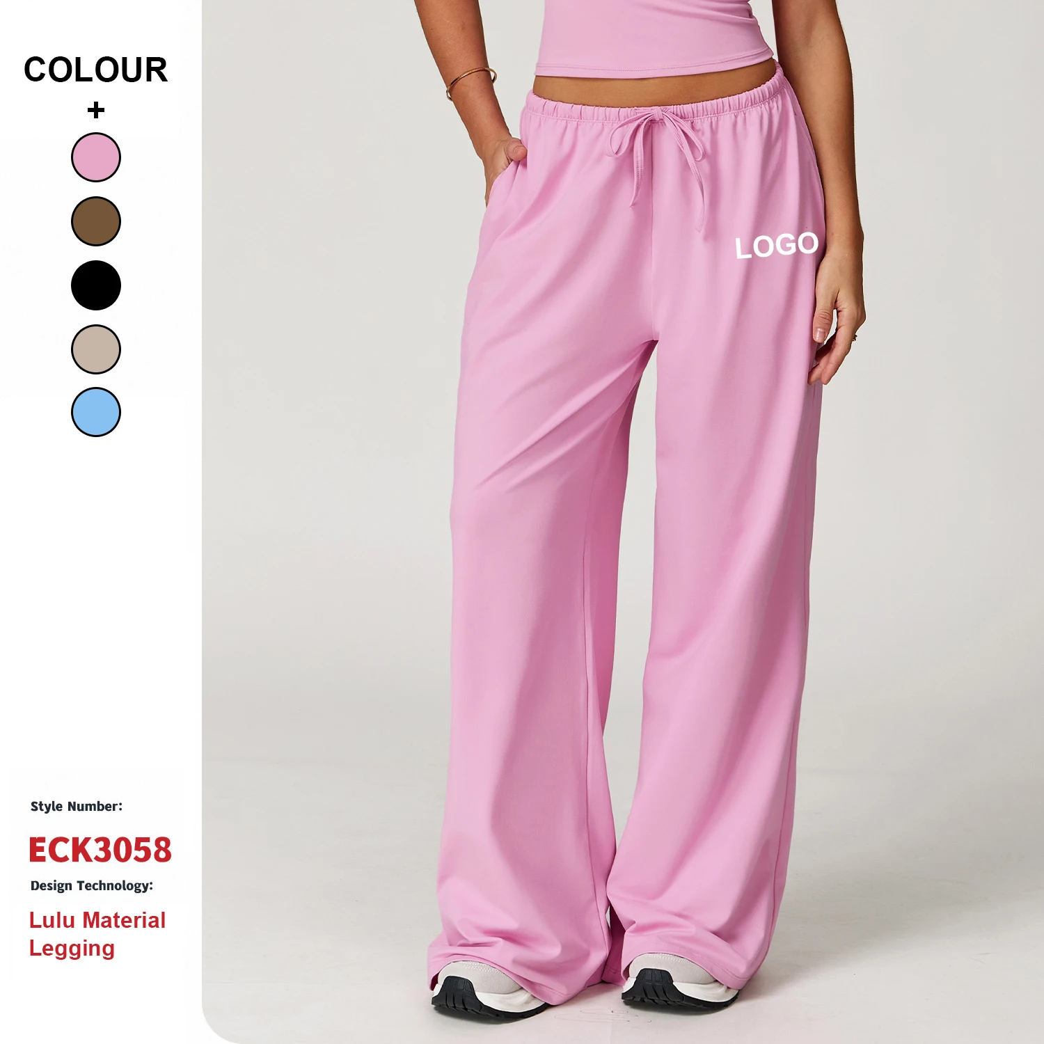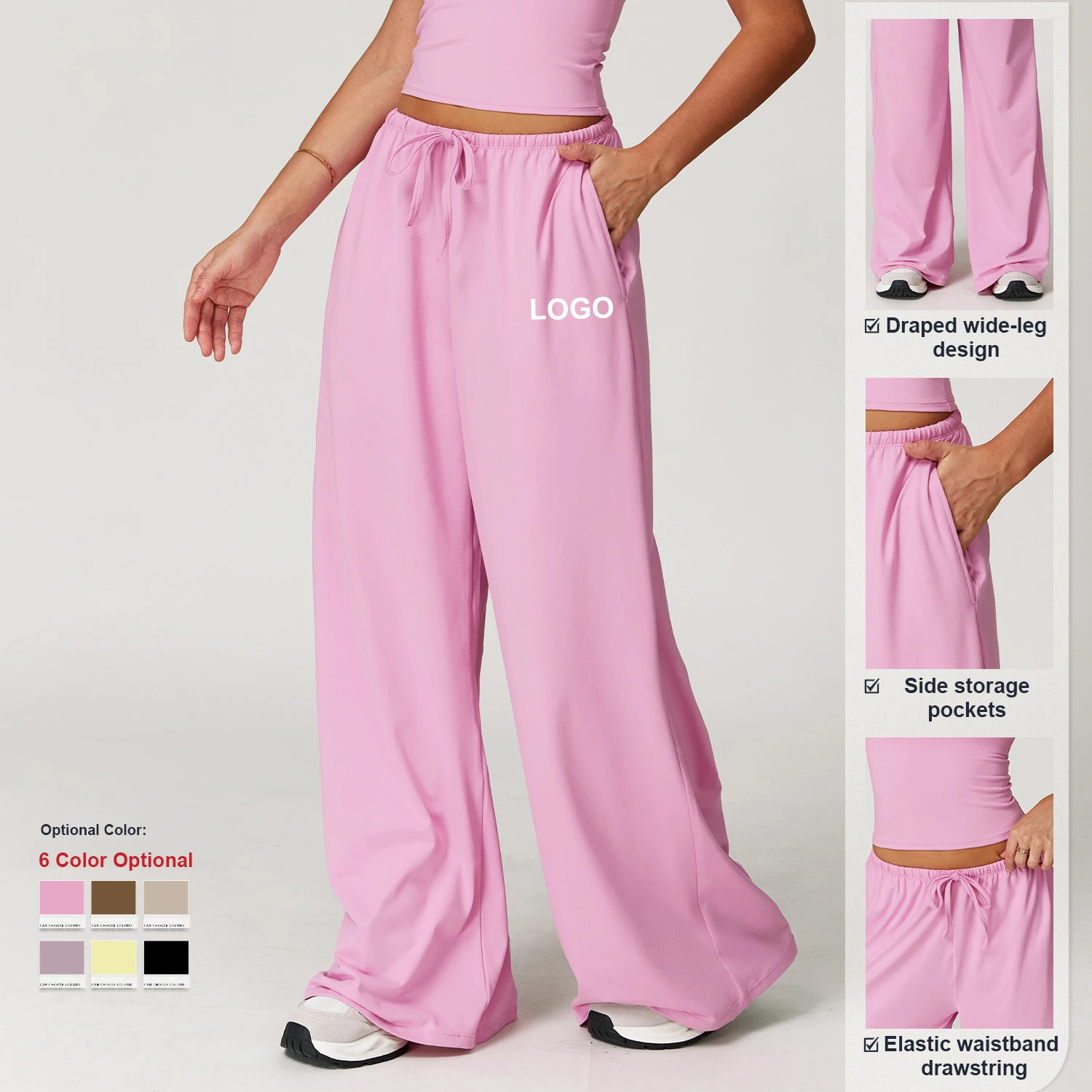 High Quality Customizable Logo Wide-Leg Loose Casual Pants Women Gym Sports Fitness Yoga Elastic Drawstring Workout Trousers
