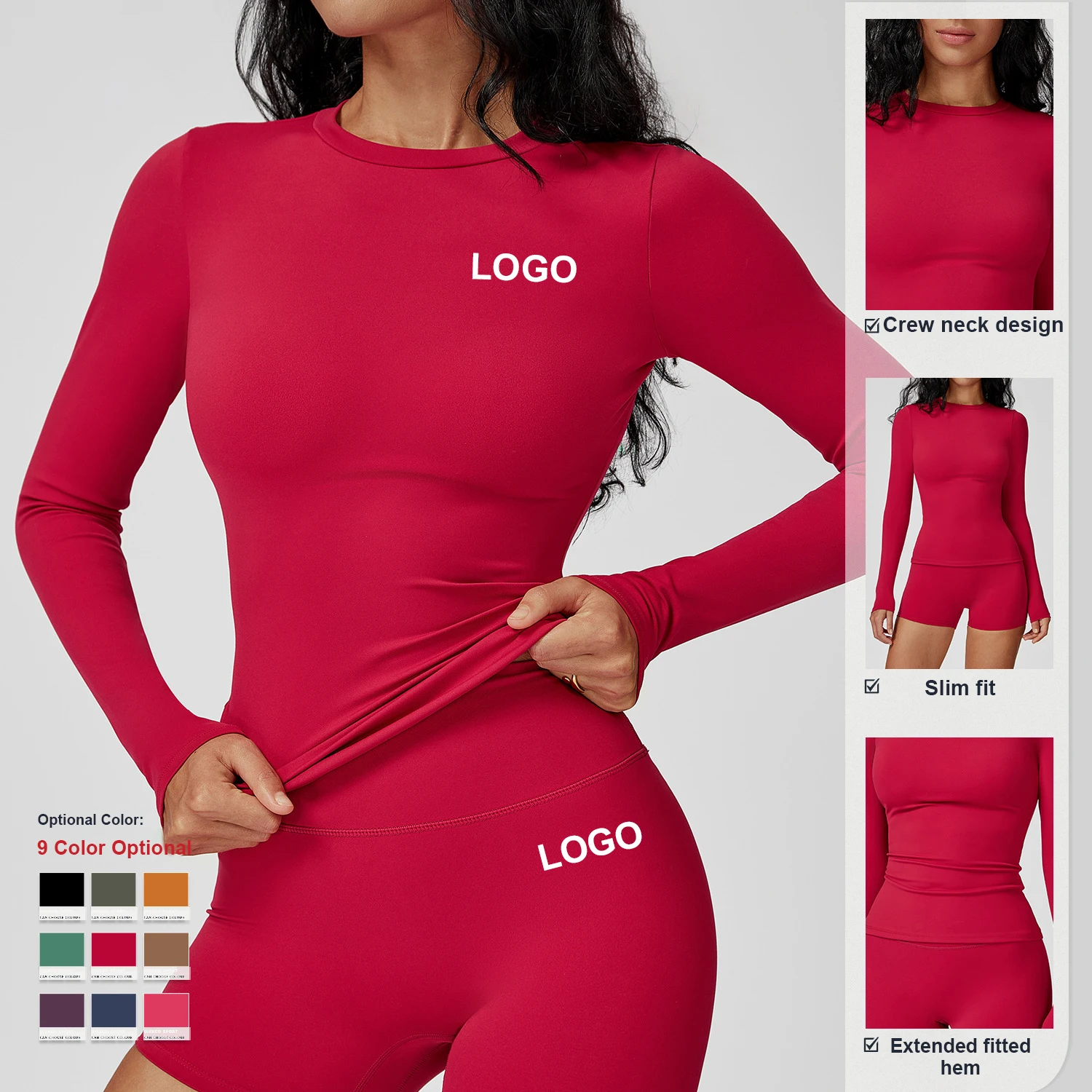 Custom High Quality Quick Drying Breathable Long Sleeve T Shirts Crew Neck Workout Clothes Top Women Gym Running Sports T Shirts