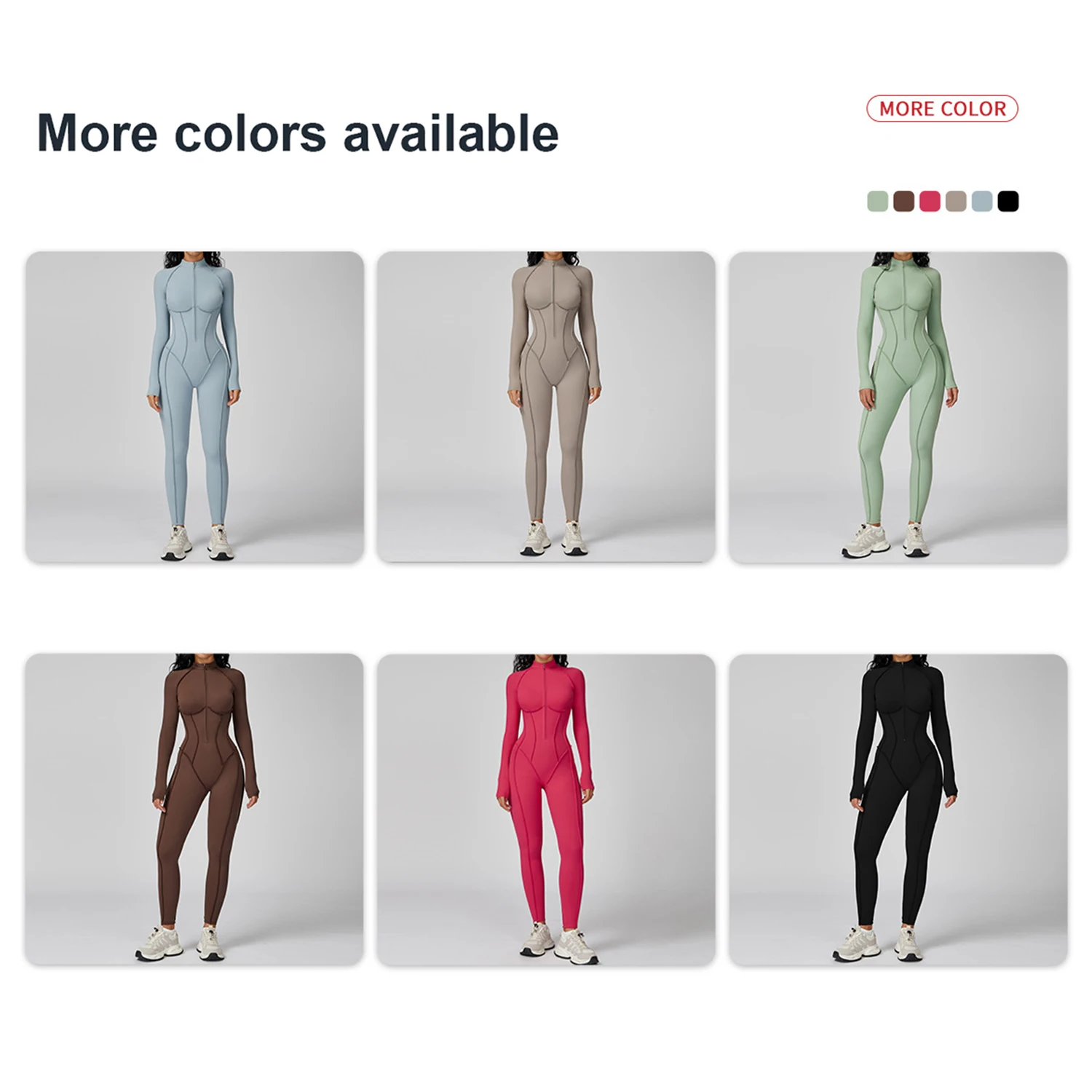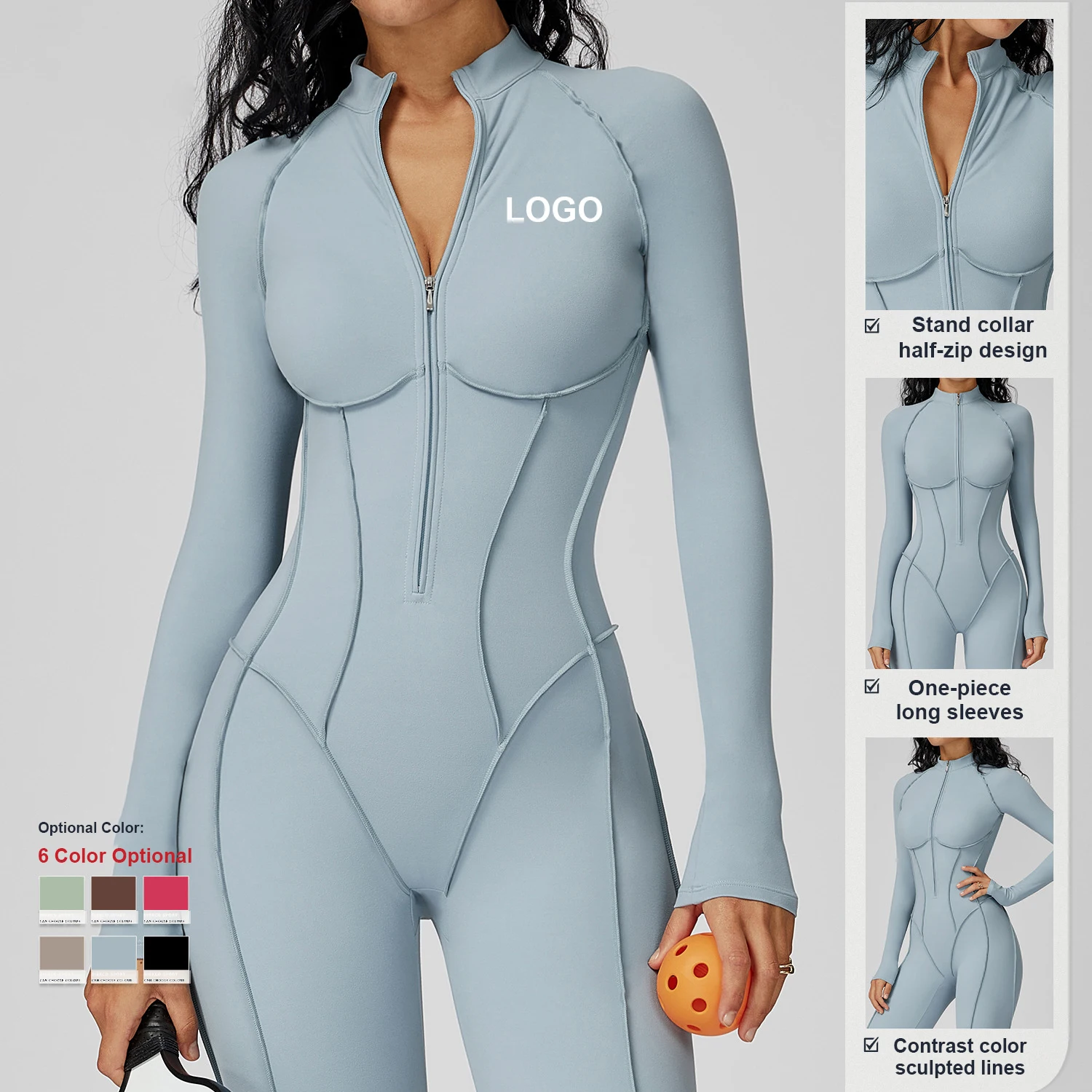 Custom High Quality Quick Drying Contrasting Color Stand up Collar Bodysuit Half Zip One Piece Fitness Wear Women Sport Jumpsuit