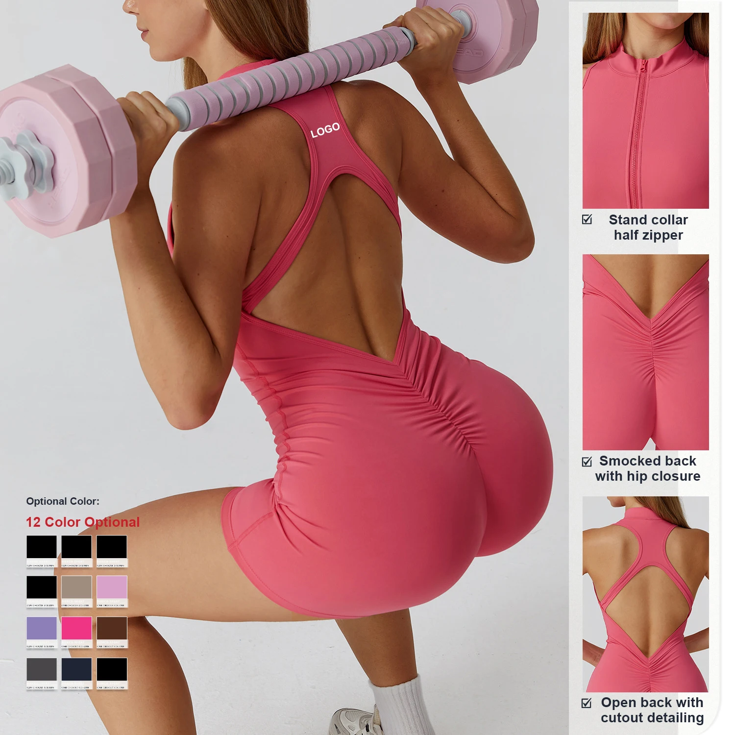 Spring High-Intensity Quick-Drying Yoga Bodysuit One Piece Yoga Jumpsuit Women Sports Fitness Short Sleeveless Zipper Bodysuit