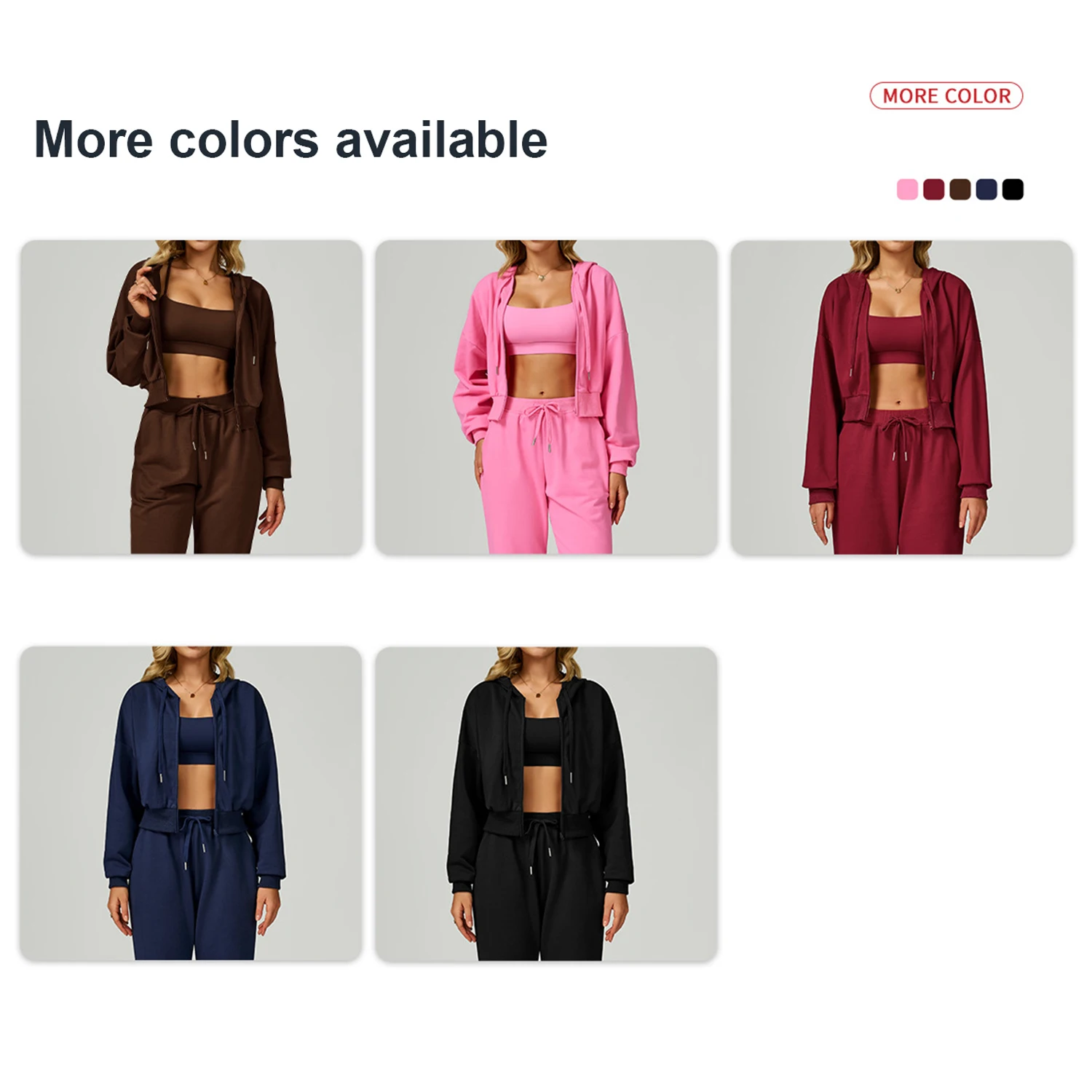 Autumn Winter Zipper Jogging Sweatshirt Casual Hooded Tracksuit 4 Piece Suit Women Gym Running Fitness Jacket Sports Wear Set