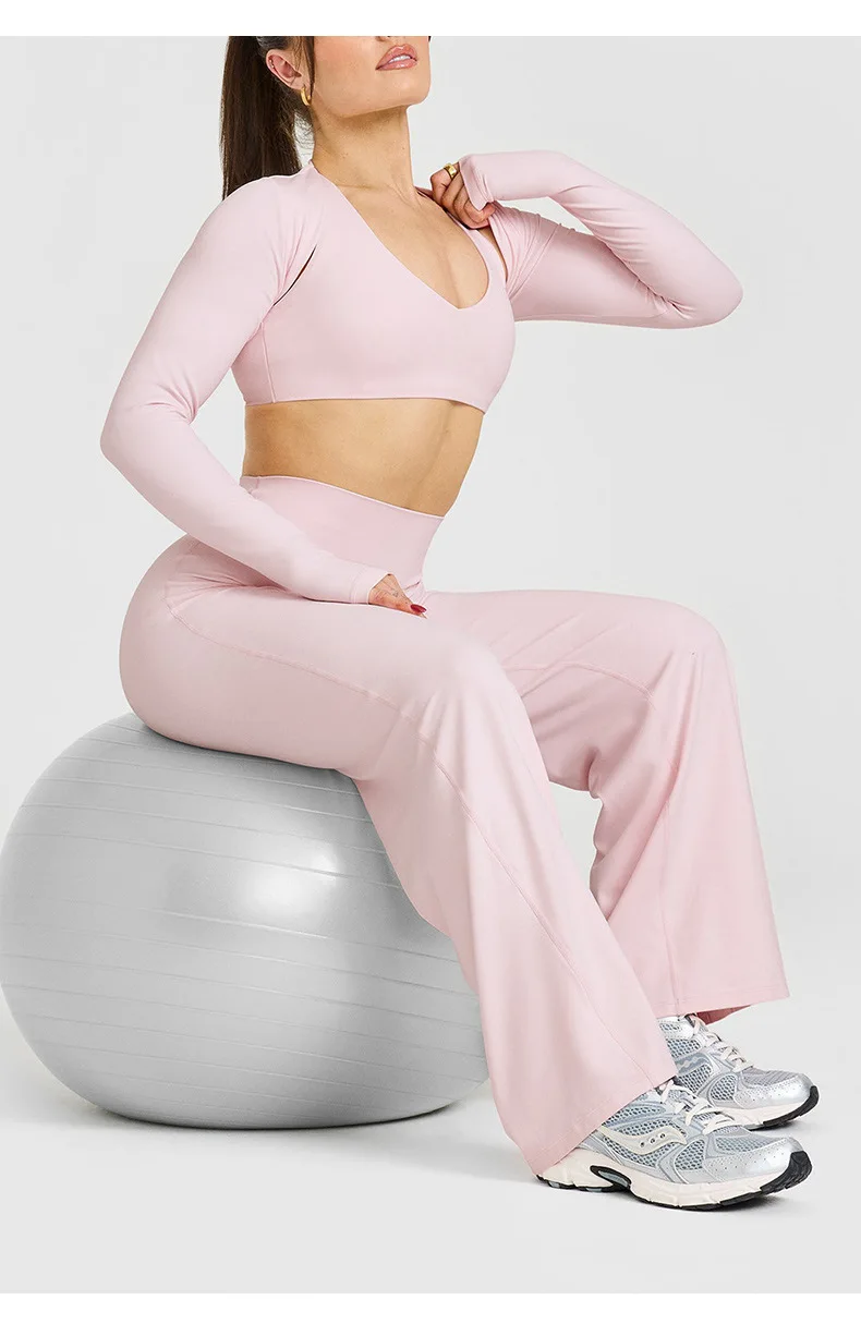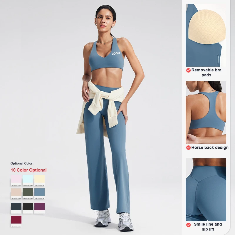 YISHENHON Recyclable Fabric Quick Dry Yoga V Waist Gym Leggings Running Workout Wide Leg Pants Flare Woman Sport Pants