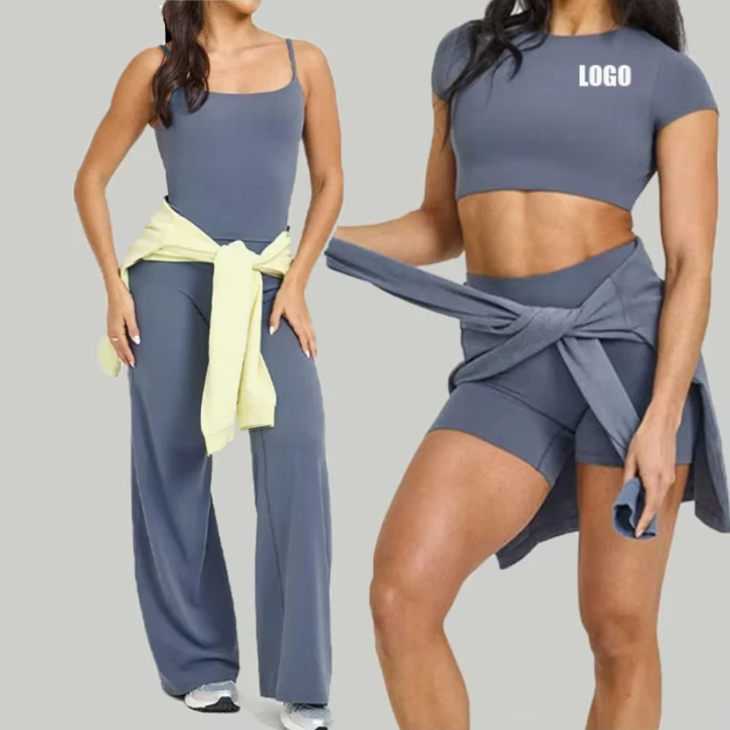 YISHENHON Recyclable Fabric Quick Dry Yoga V Waist Gym Leggings Running Workout Wide Leg Pants Flare Woman Sport Pants