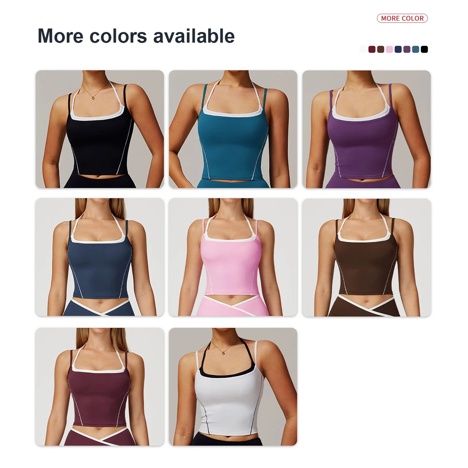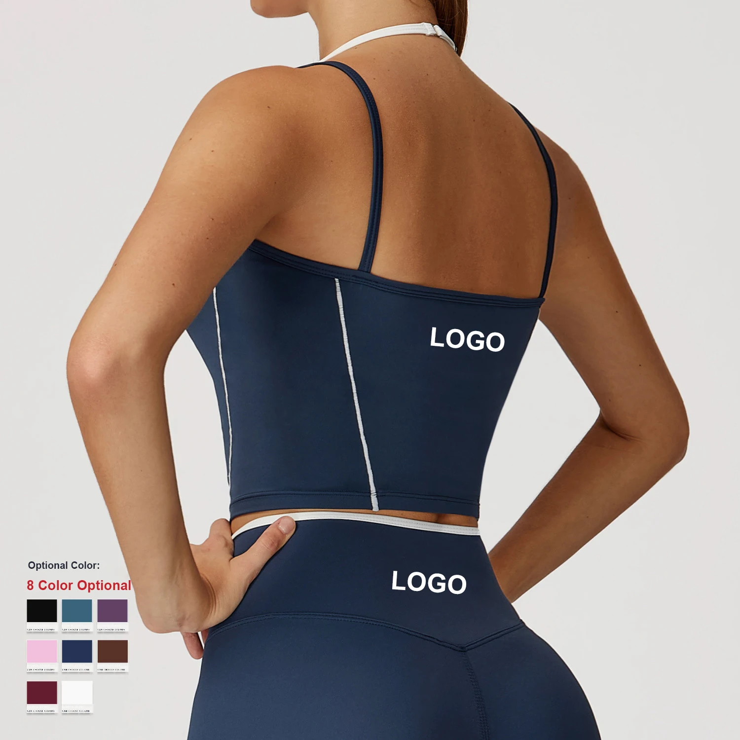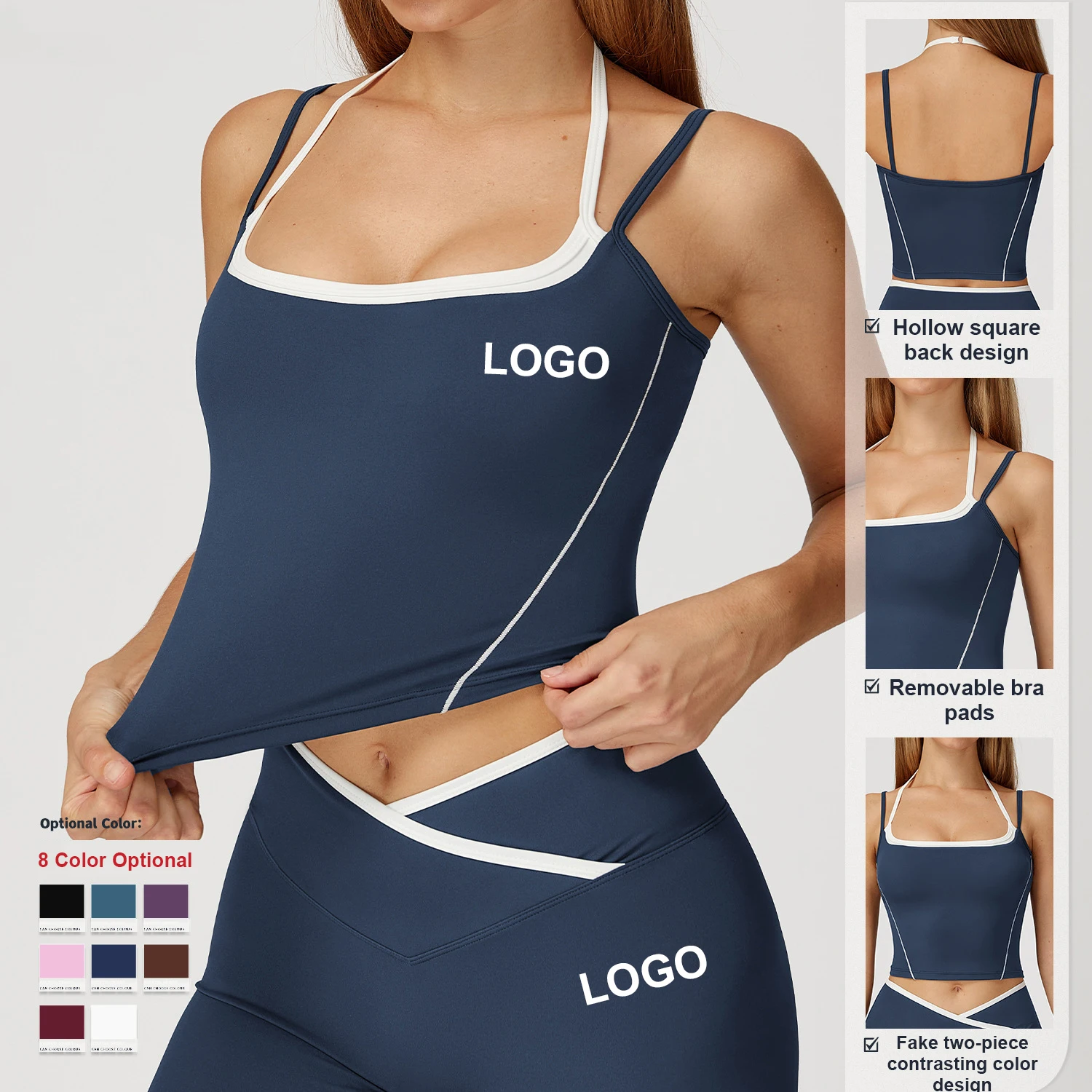 Custom High Quality Quick Drying Tight Fake Two-Piece Halter Neck Yoga Vest Women Running Sports Top Gym Fitness Suspender Bra