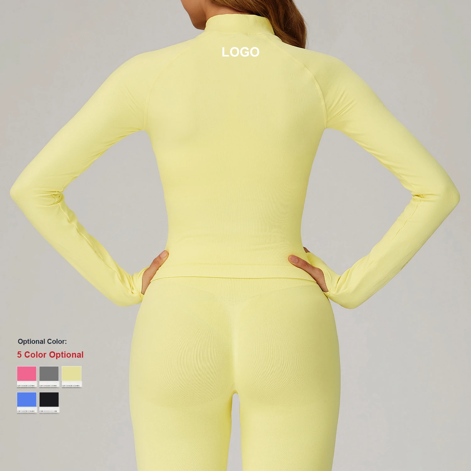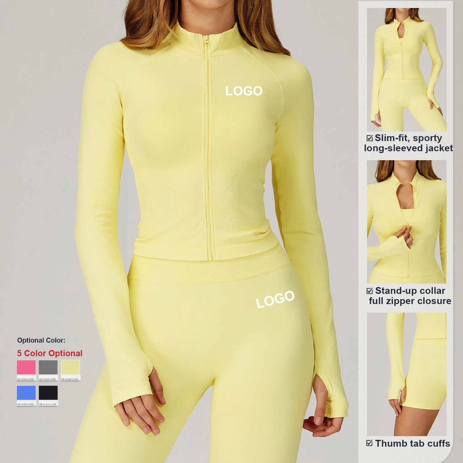 Custom High-Quality Seamless Stand-Up Collar Zipper Yoga Sports Jacket Windproof Slim-Fit Warm Running Fitness Jacket for Women