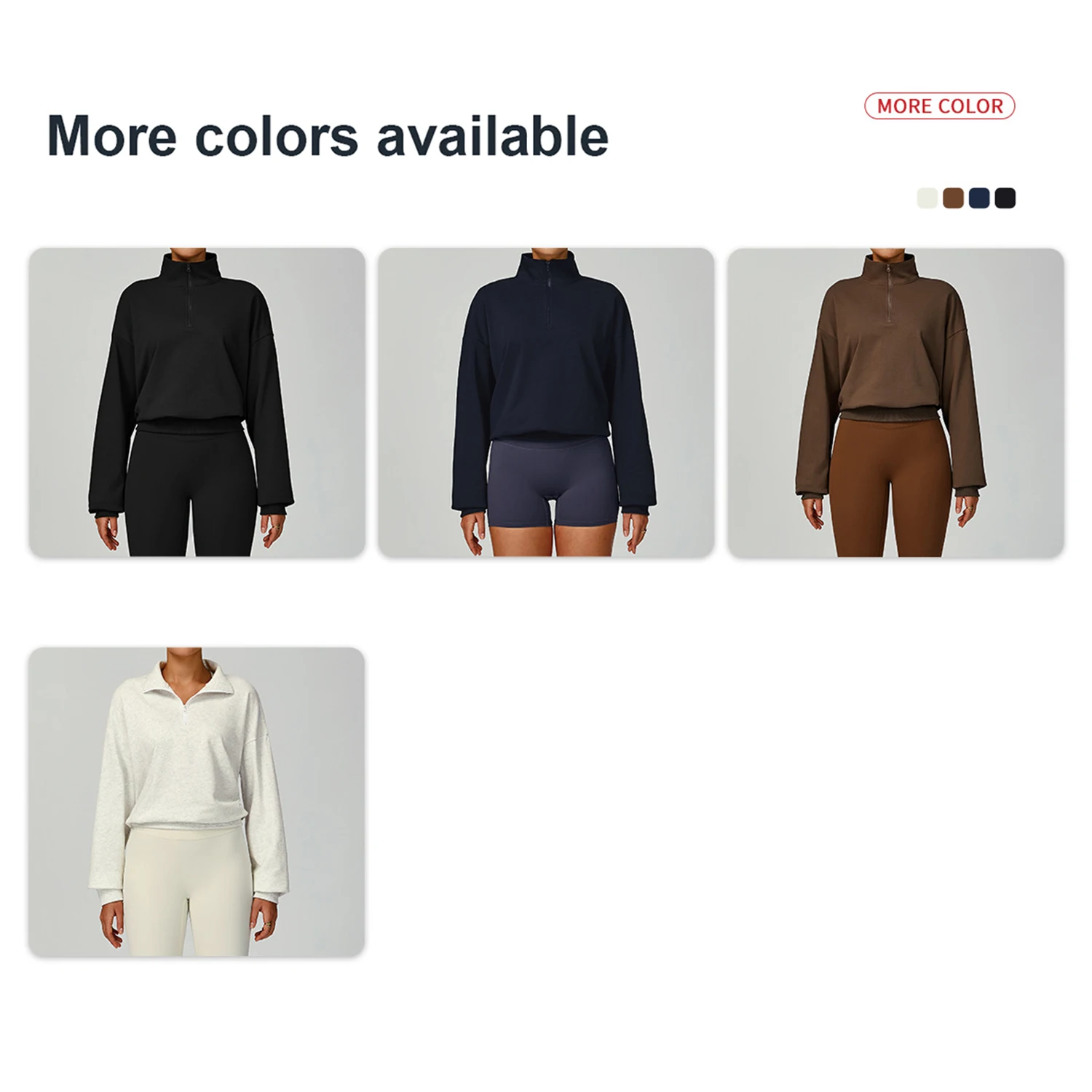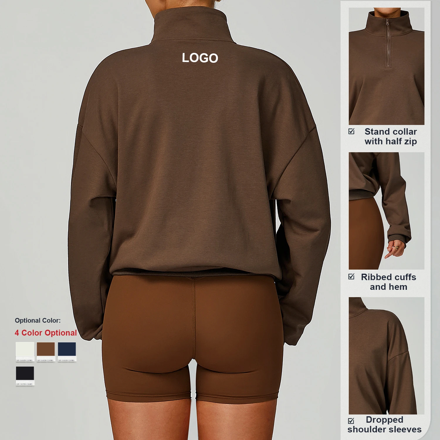 Autumn Winter Half-Zip Stand-Neck Sweatshirt Casual Loose-Fit Windproof Warm Long-Sleeved Top Women'S Running Fitness Sportswear