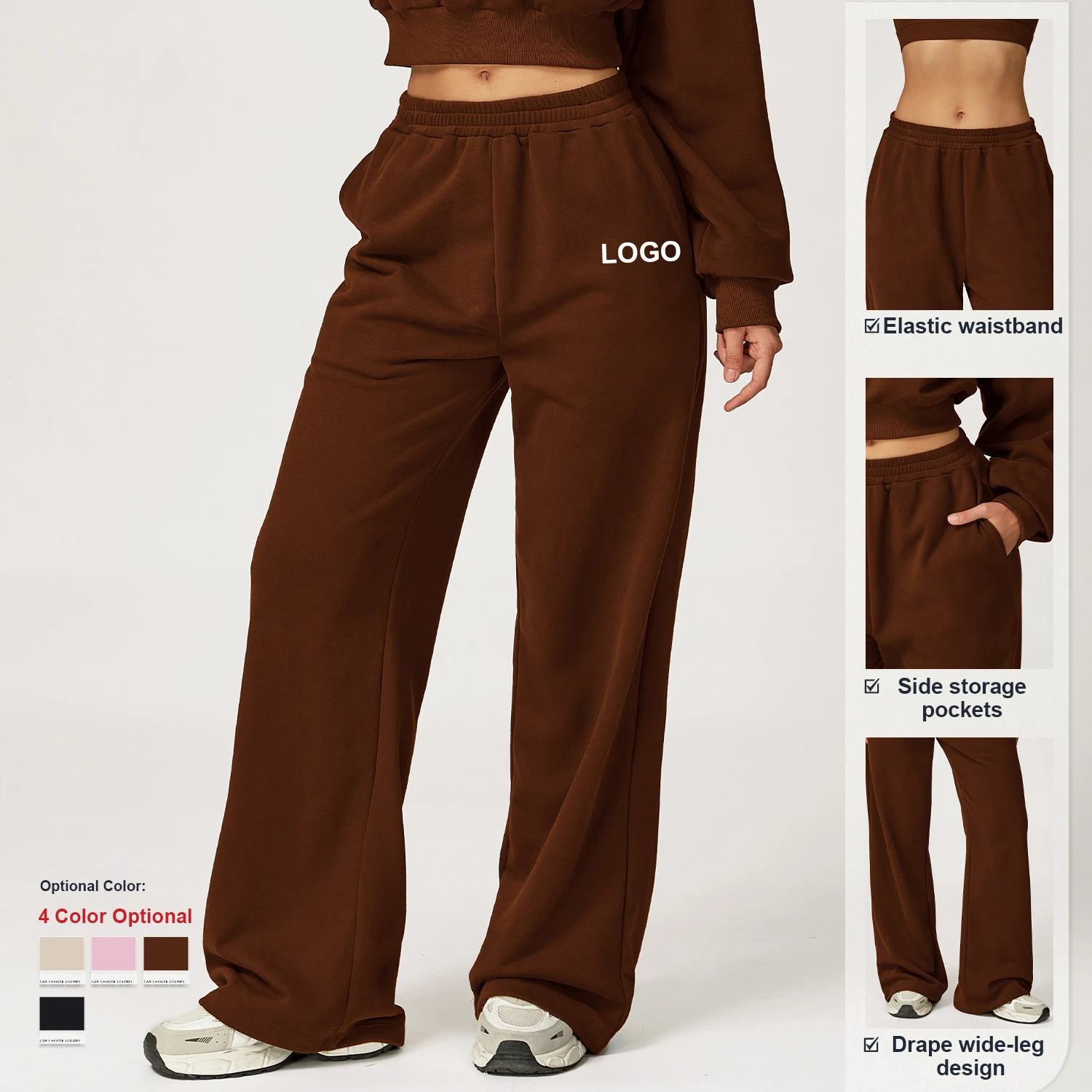 Autumn Winter High-Waisted Sweatpants Wide-Leg Straight-Legged Loose-Fit Sports Pants Women Outdoor Casual Running Sweatpants