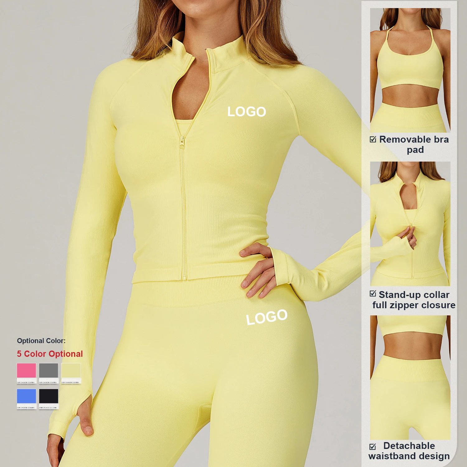 YISHENHON Custom Logo Slim Workout Top Yoga Jackets Zipper Womens Tight Quick Dry Long Sleeve Yoga Sports Coat With a Hat