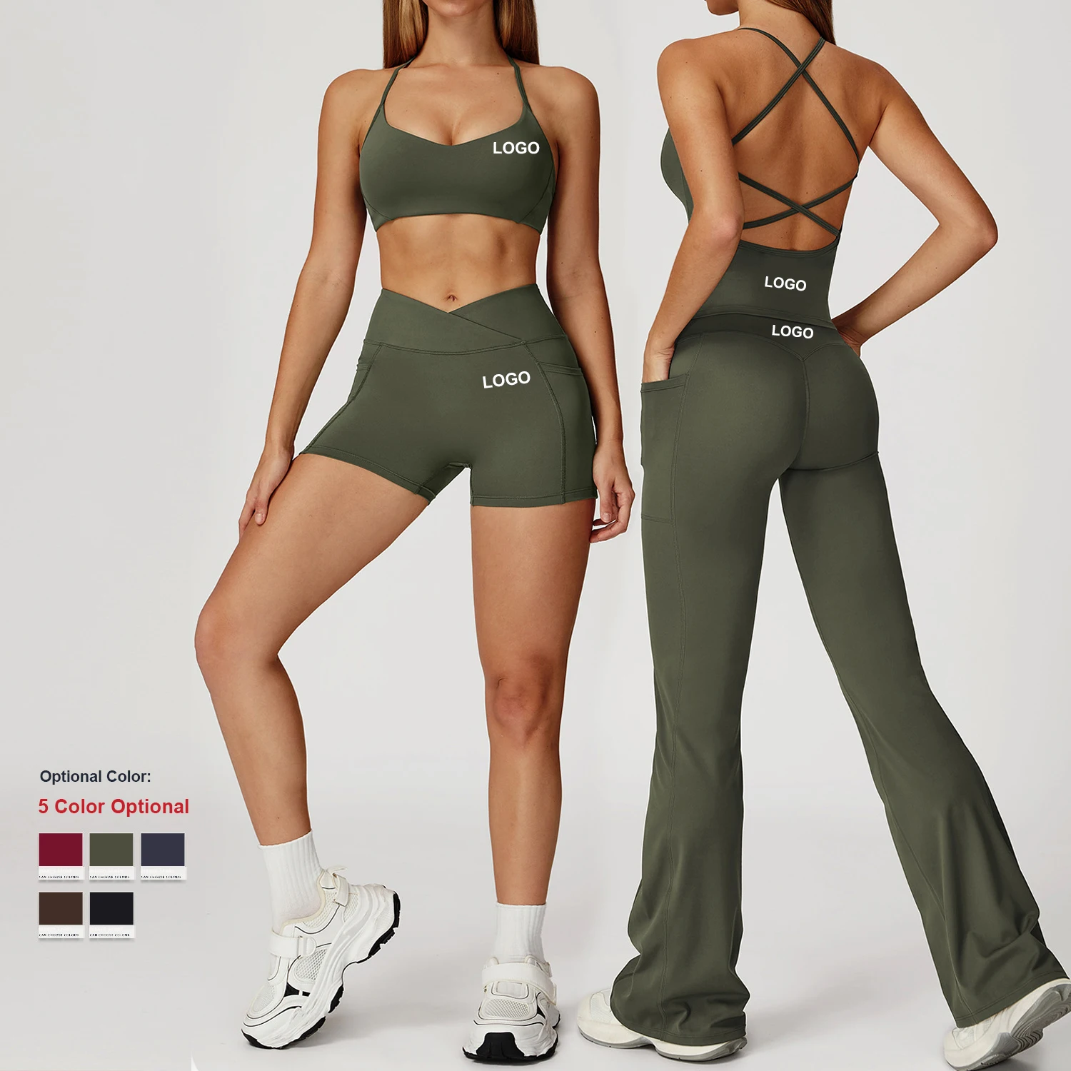 YISHENHON Recyclable Fabric Quick Dry Yoga V Waist Gym Leggings Running Workout Wide Leg Pants Flare Woman Sport Pants