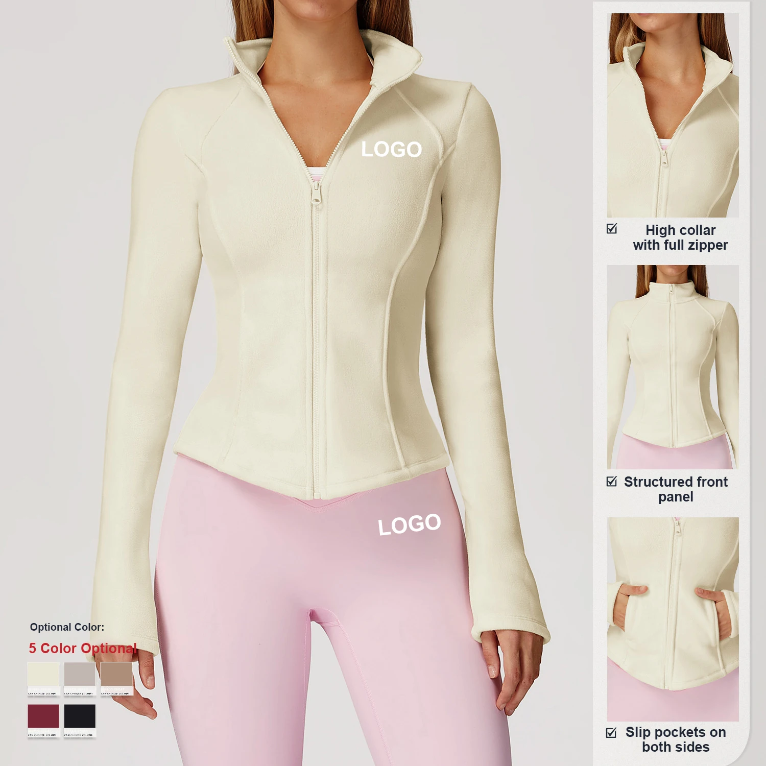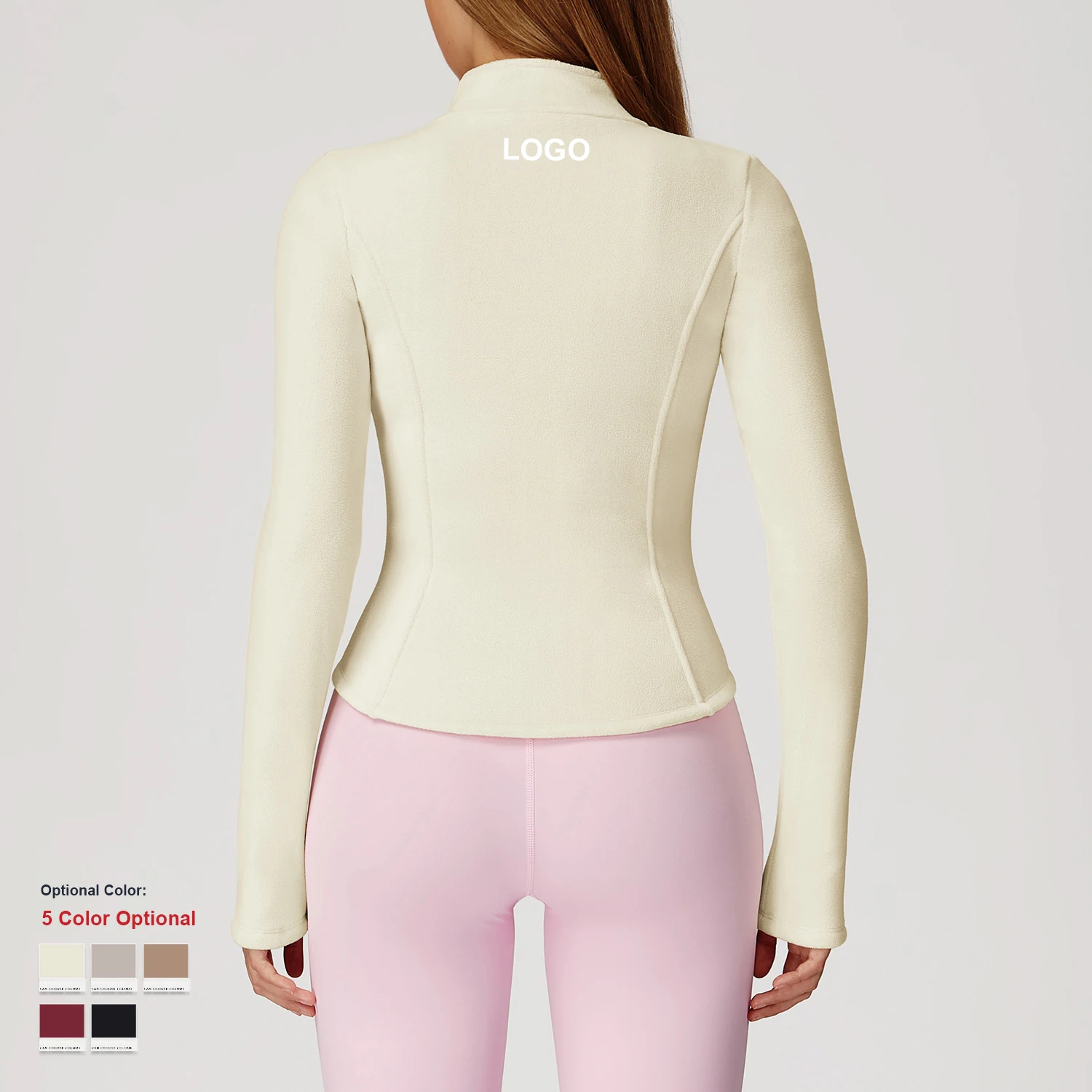 Custom Quick-Drying Stand-Up Collar Fleece Sports Jacket Long Sleeve Coat Women Thickened Warm Polar Fleece Yoga Jacket Set