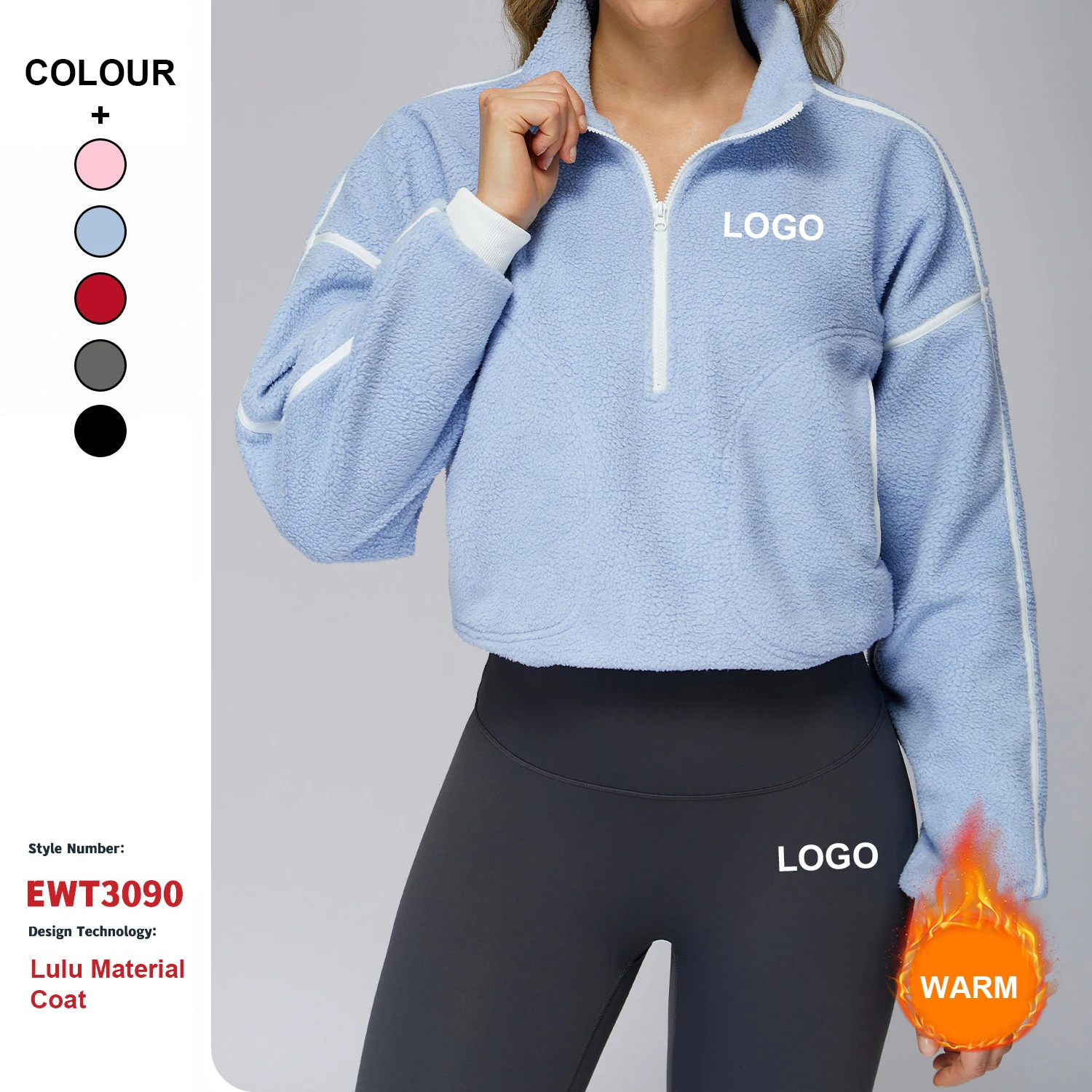 Custom High-Quality Autumn Winter Coat Stand-Up Collar Zipper Women Windproof Warm Polar Fleece Running Sport Jacket With Fleece