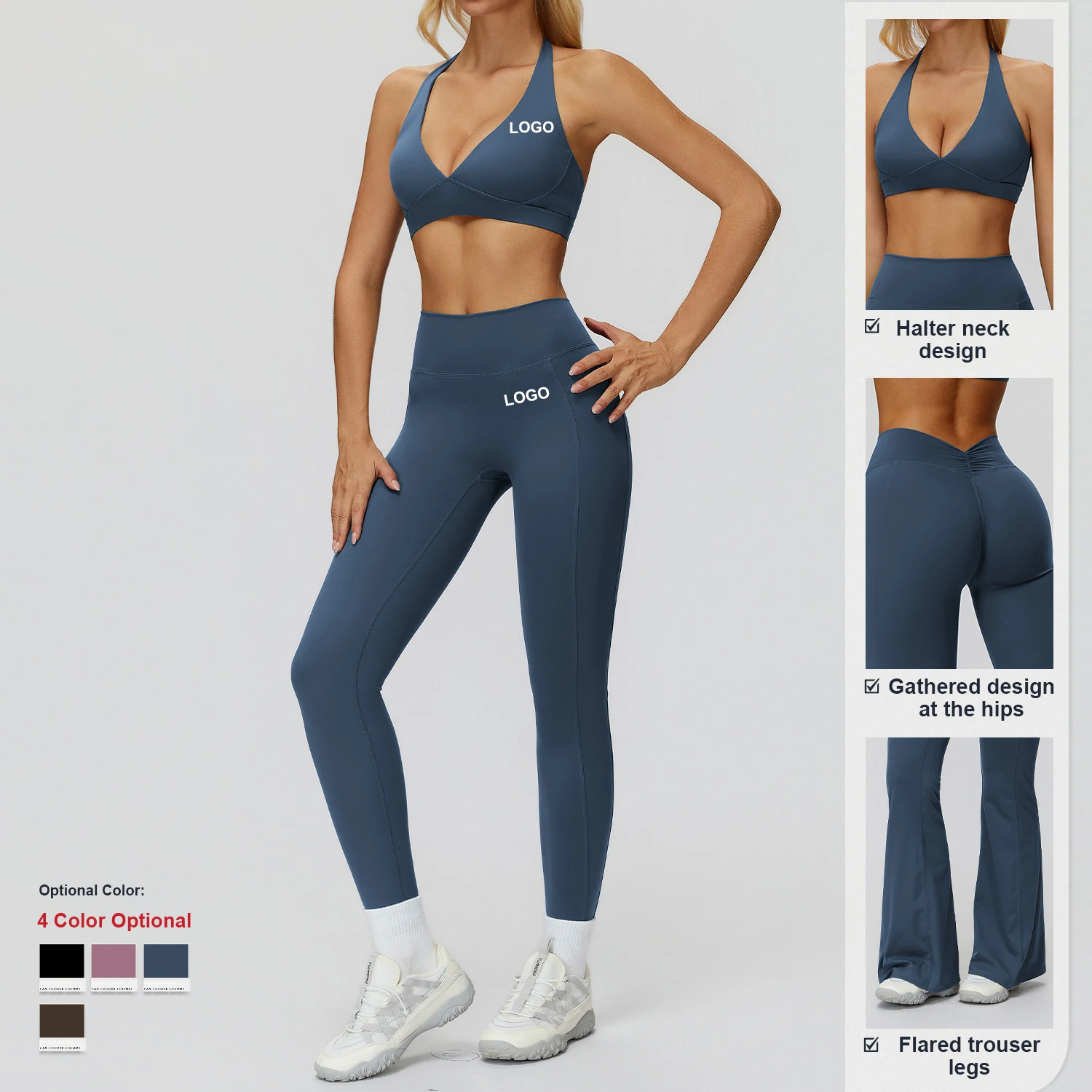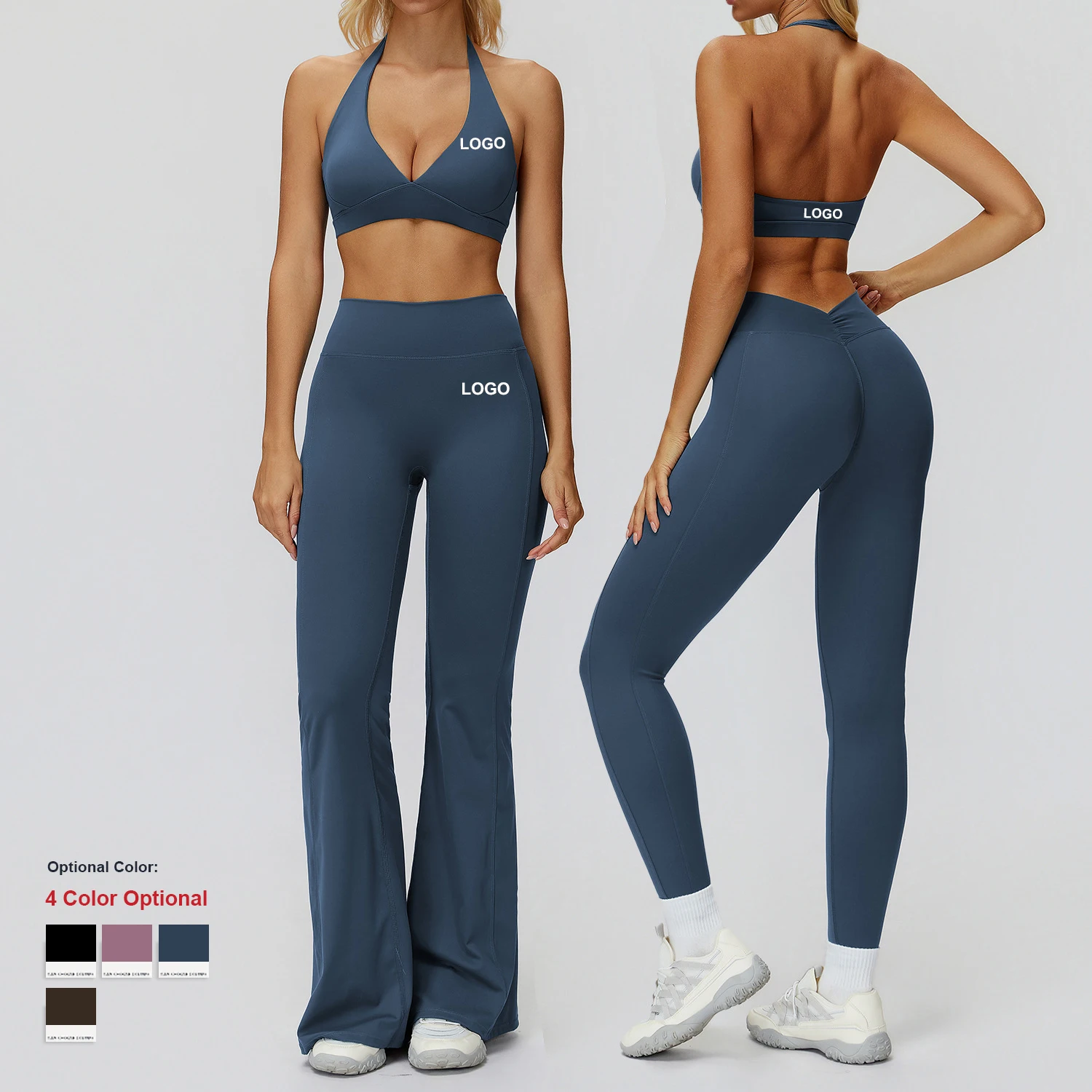 YISHENHON Recyclable Fabric Quick Dry Yoga V Waist Gym Leggings Running Workout Wide Leg Pants Flare Woman Sport Pants