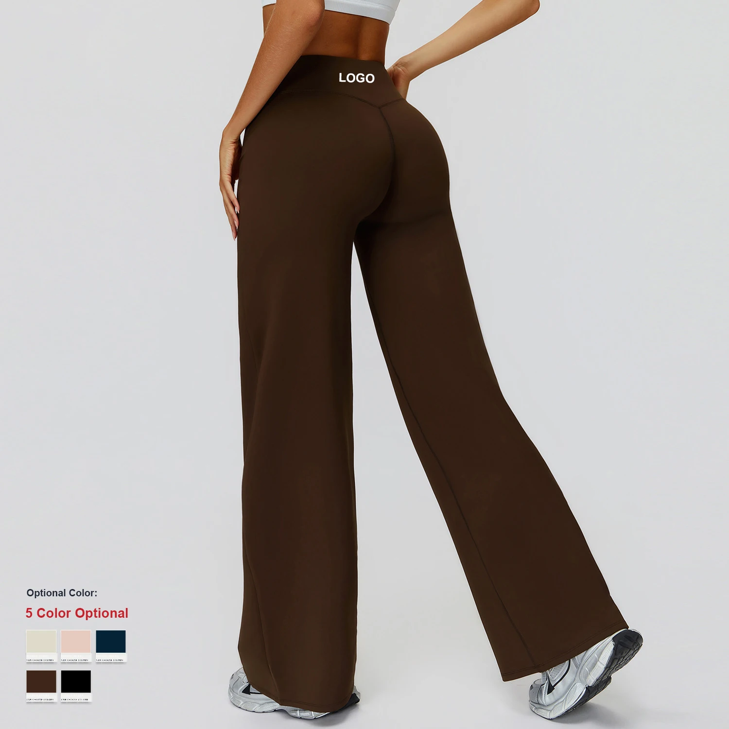 YISHENHON Recyclable Fabric Quick Dry Yoga V Waist Gym Leggings Running Workout Wide Leg Pants Flare Woman Sport Pants