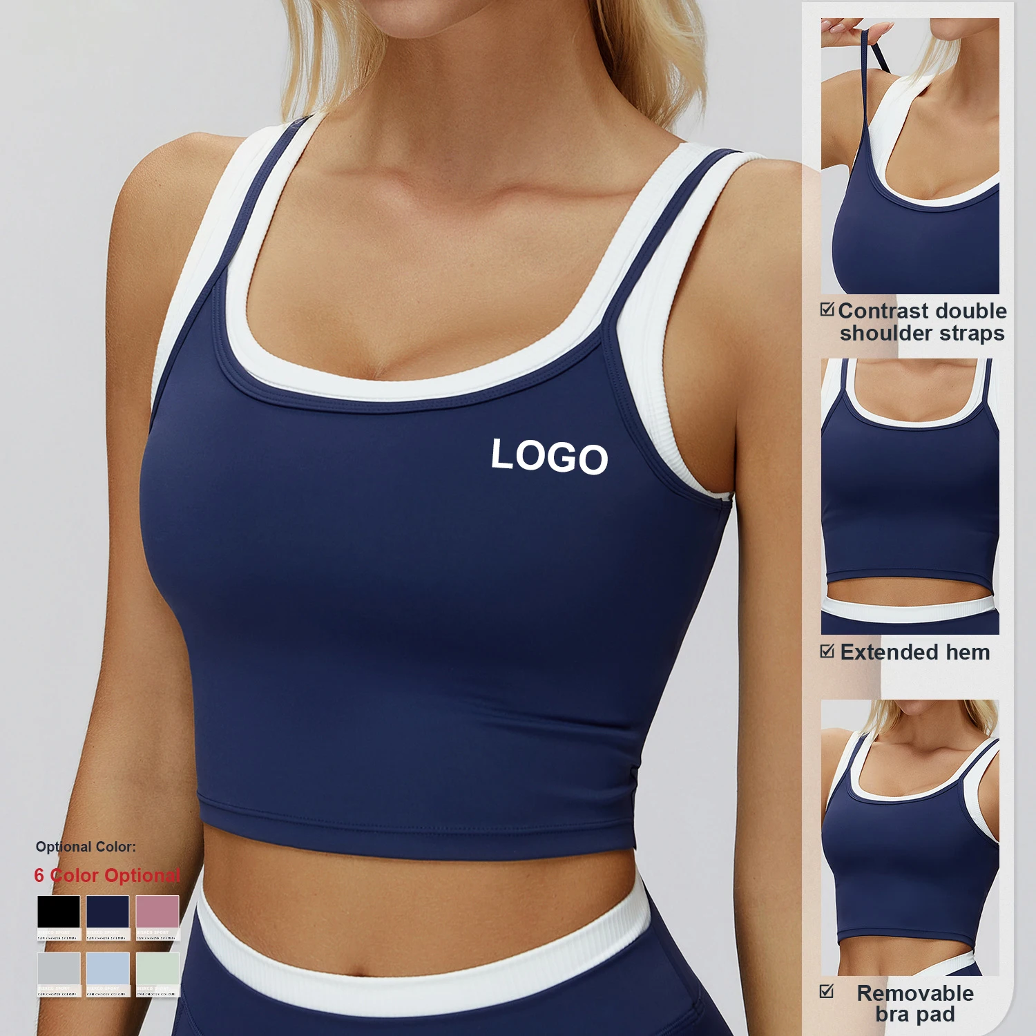 Custom High-Quality Two-Piece Split Vest Women Contrast Color Top Sujetador Deportivo Gym Sports Yoga Bra for Running Fitness