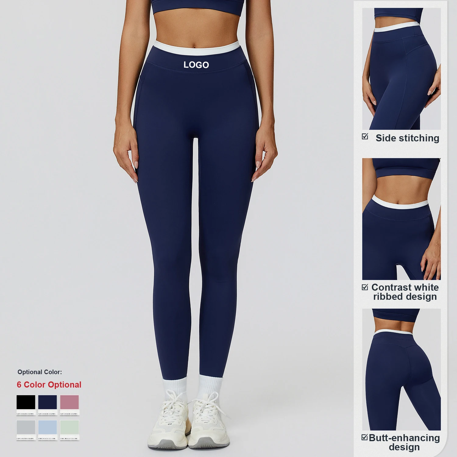 Custom High-Quality Quick-Drying Breathable High Waist Color-Blocked Tights Pants Women'S Sports Running Fitness Yoga Leggings