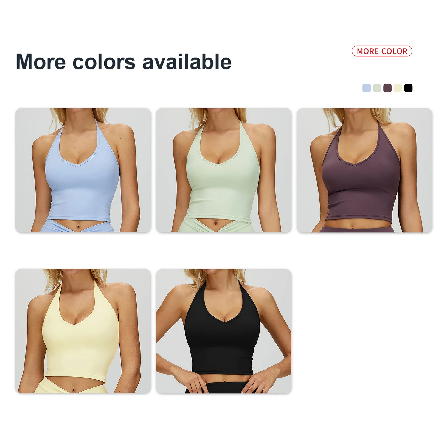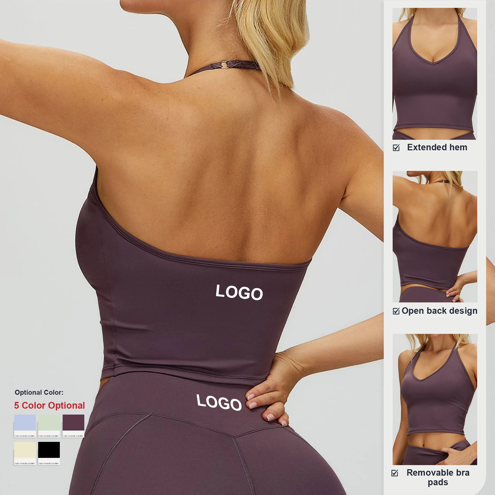 Custom Fabric Style Logo Quick-Drying Tight Halter Neck Compression Sports Yoga Vest Sujetador Deportivo Gym Workout Running Bra