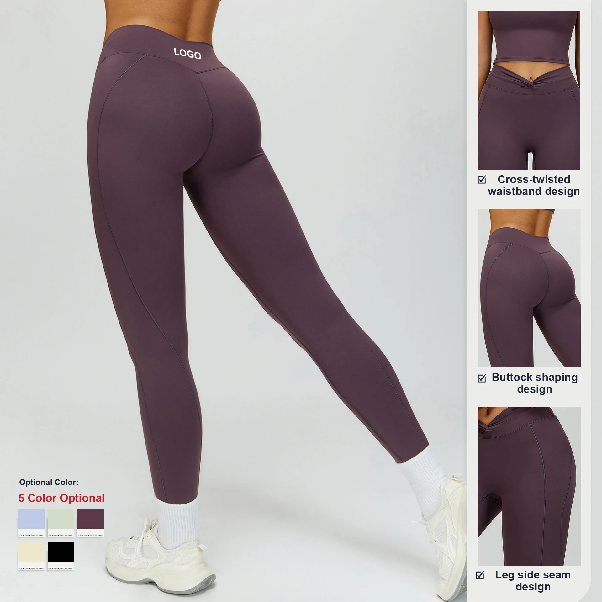 Custom Fabric Style Color Logo Cross High Waist Tight Yoga Pants Women Gym Fitness Workout Running Quick-Drying Sports Leggings