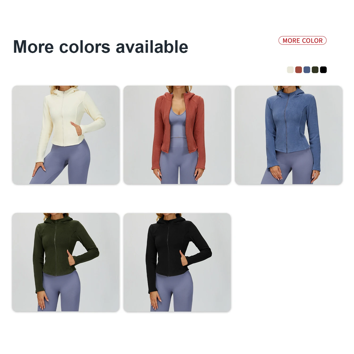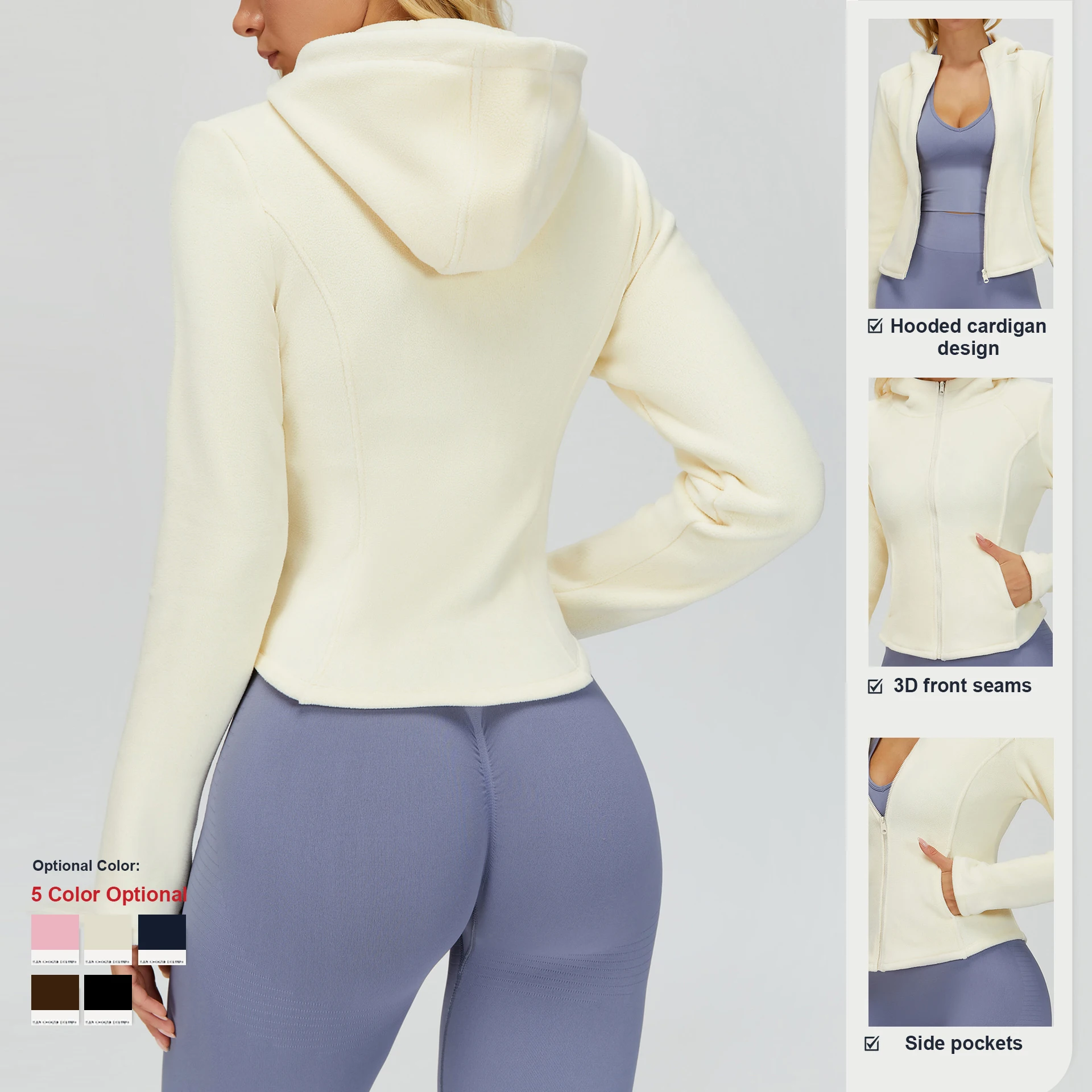 Custom Fabric Style Color Logo Fleece-Lined Slim-Fit Hooded Sports Coat Outdoor Yoga Clothes Warm Zip-Up Jacket With Pockets