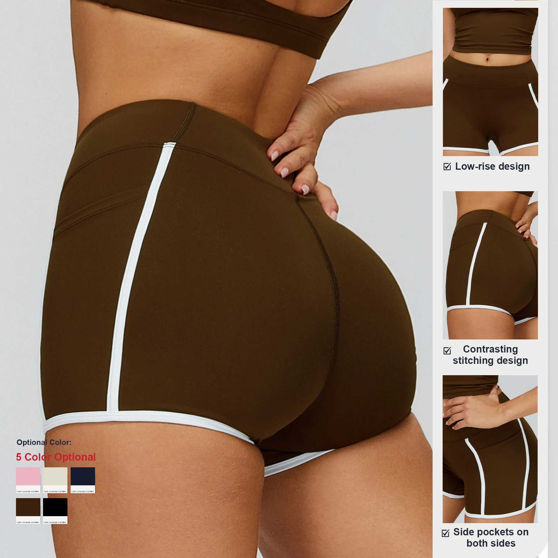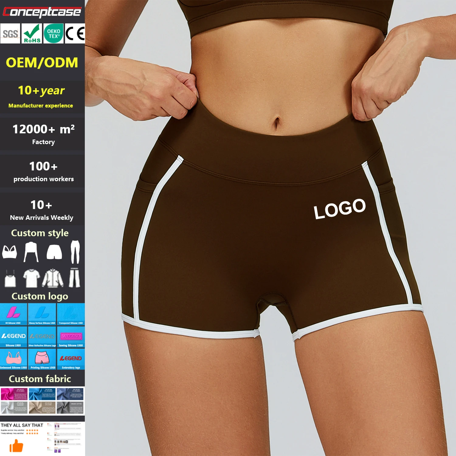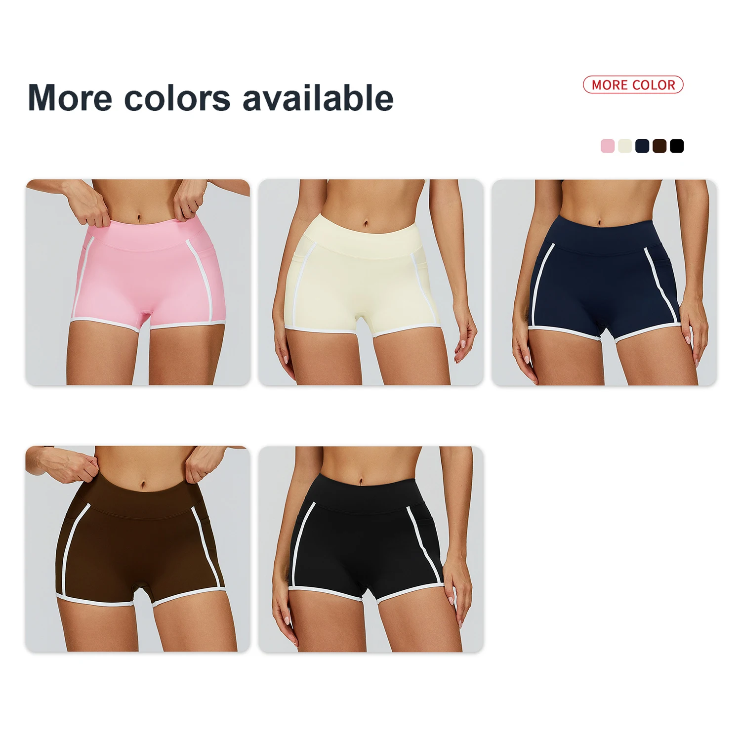 Custom Fabric Style Logo High Waist Quick Drying Striped Tight Workout Yoga Shorts Women Outdoor Gym Fitness Running Shorts