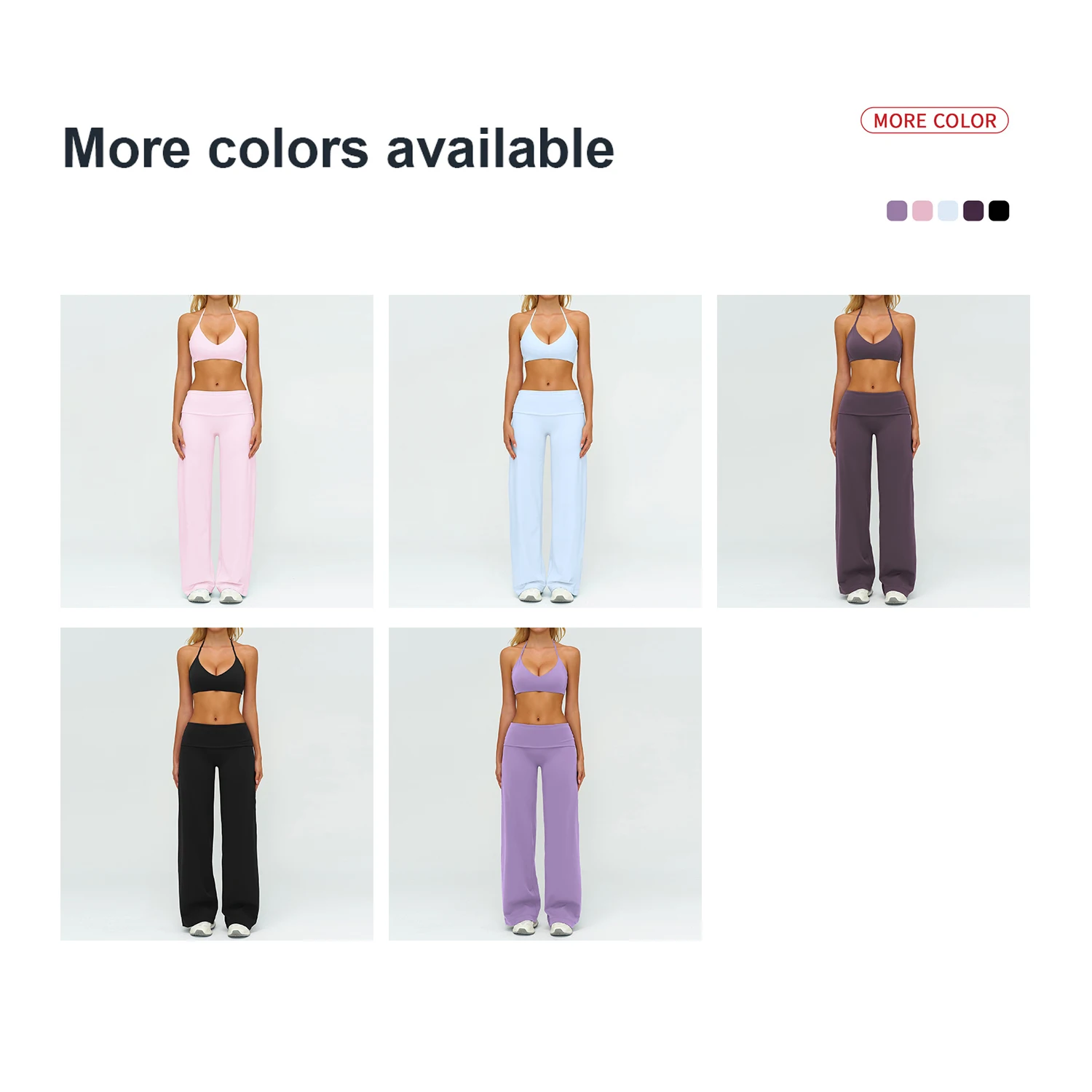 YISHENHON Recyclable Fabric Quick Dry Yoga V Waist Gym Leggings Running Workout Wide Leg Pants Flare Woman Sport Pants