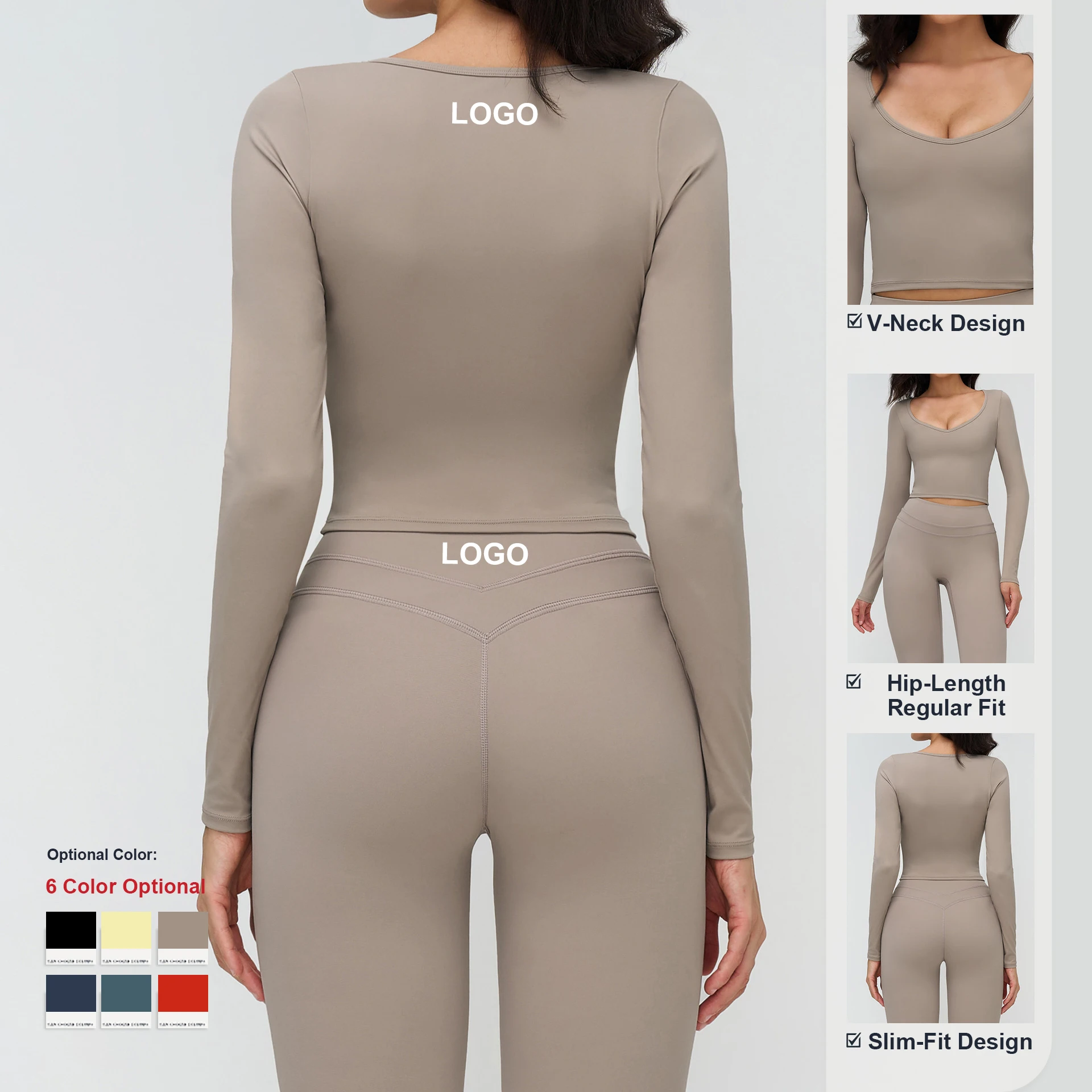 Custom Logo Quick-Drying Breathable Yoga Long Sleeve Top V Neck Tight Workout Shirt Women Gym Running Fitness Clothes Sports Top