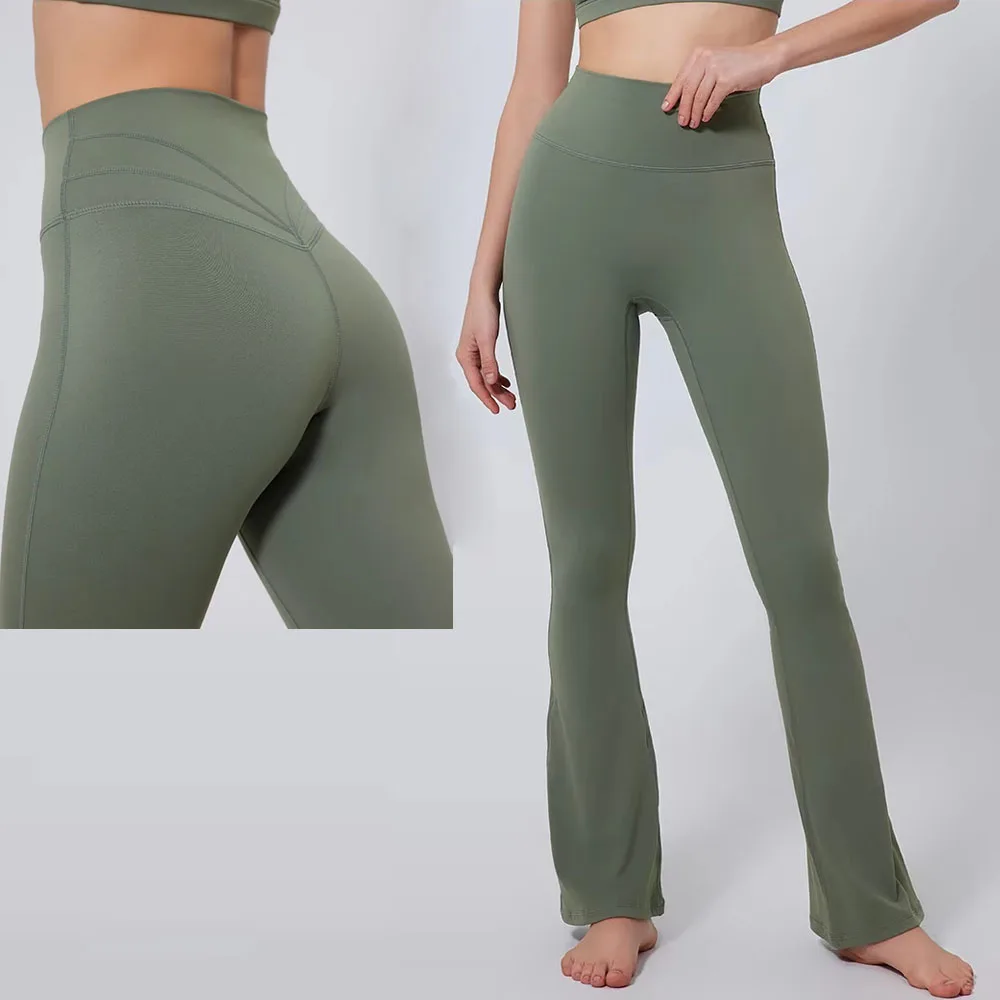 YISHENHON Recyclable Fabric Quick Dry Yoga V Waist Gym Leggings Running Workout Wide Leg Pants Flare Woman Sport Pants