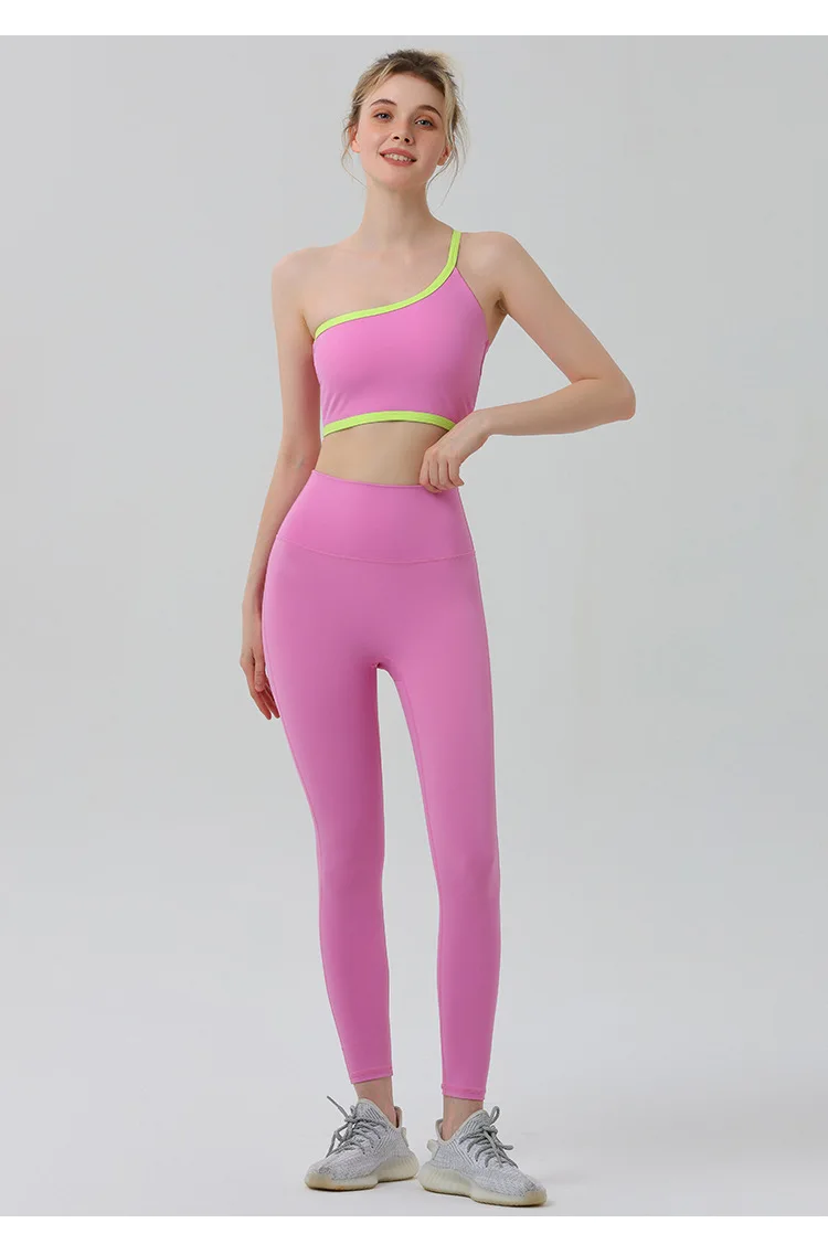 Custom Logo GYM Workout Sport Wear One Shoulder Sport Bra for Women Yoga Pants Leggings Yoga Set