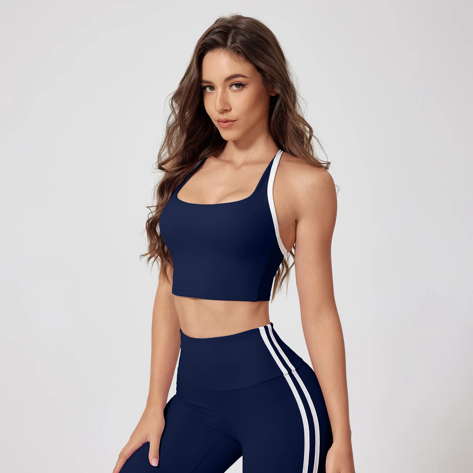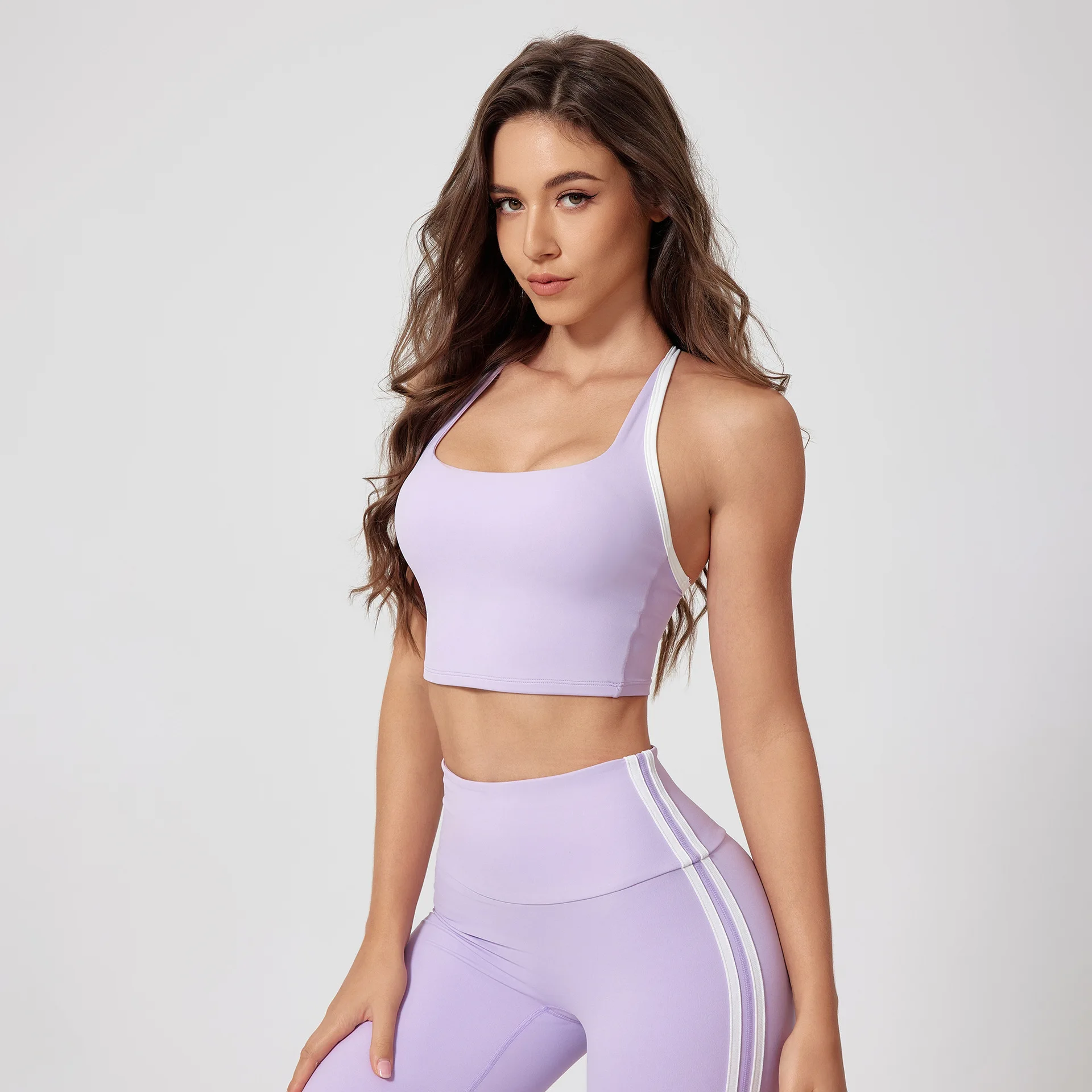 Bnice Custom Logo High Quality Side Stripe Yoga Pants Sets Women Outfit Clothing Yoga Flare Leggings Back Cross Sexy Sports Bra