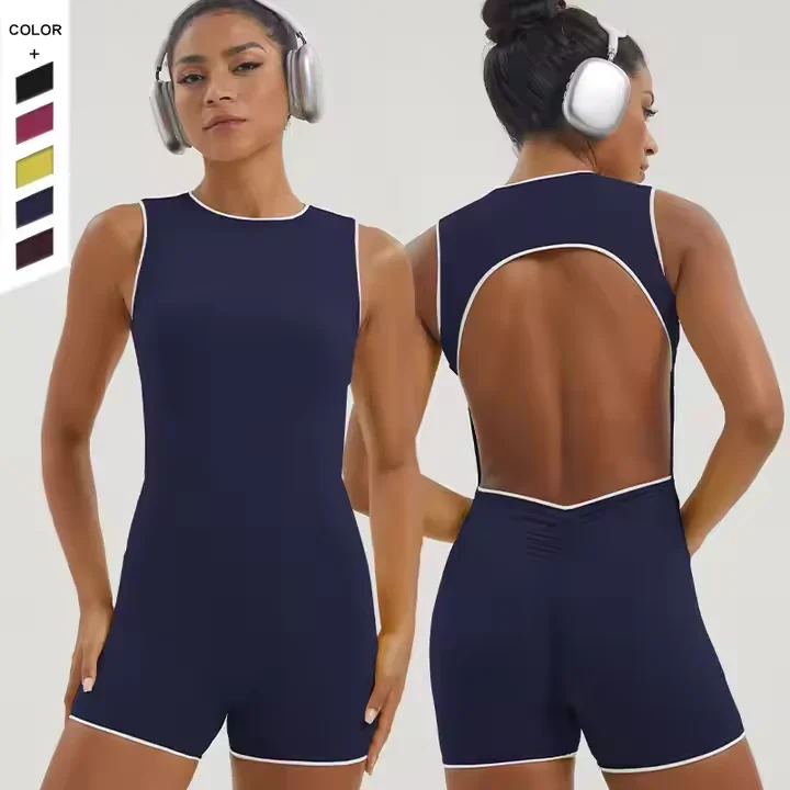 BNICE Women Breathable Sports Bodysuit & Jumpsuit Backless Design With Pad Side Stripe Sleeveless Shorts Yoga Sets Custom Logo