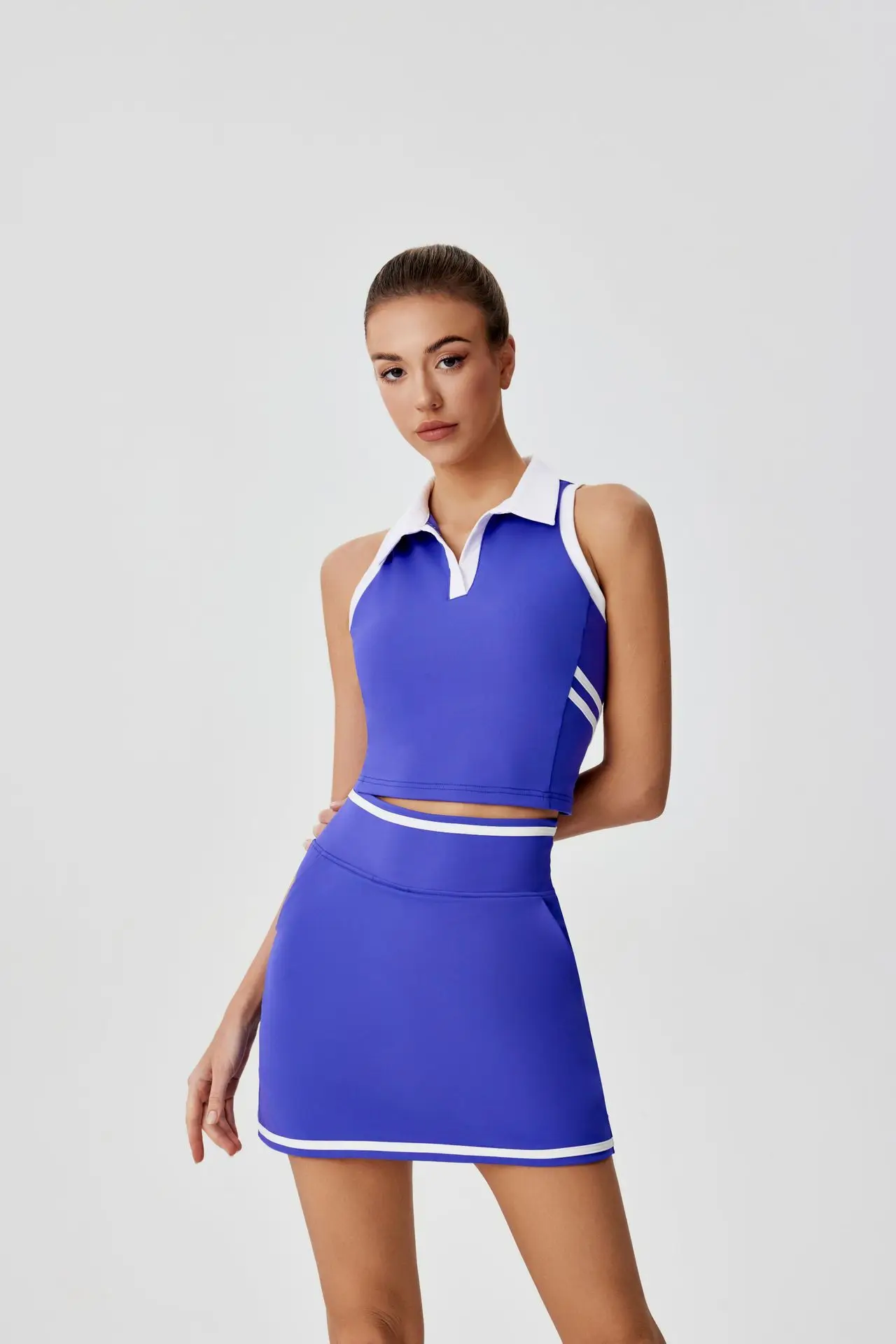 Custom LOGO GYM Fitness Slim Sport Wear Women Top Vest Elegant Girls Yoga Golf Skirt for Women Tennis Skirt Set