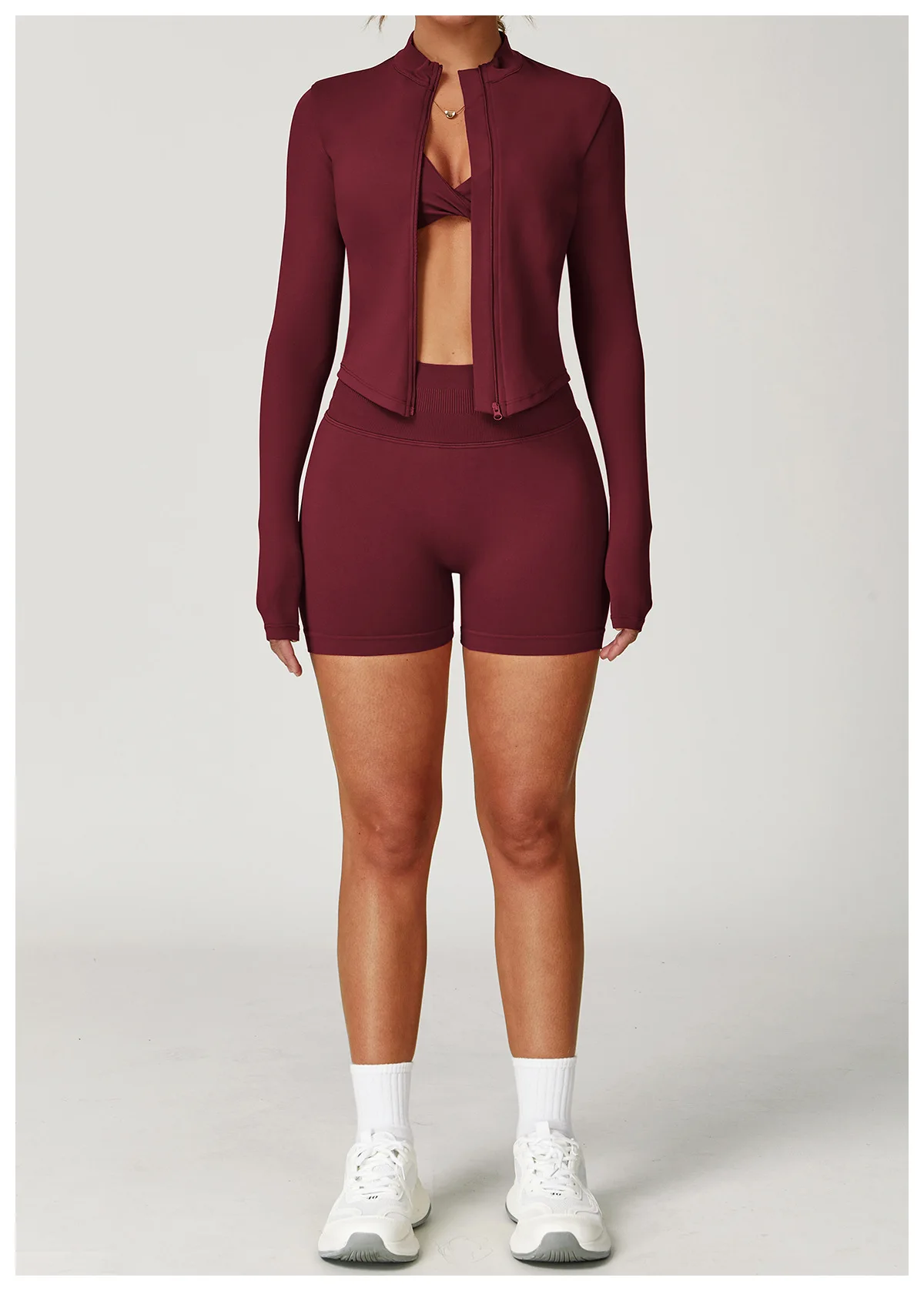 YISHENHON New Arrivals Quick-drying Women's Tight Running Sports Fitness Yoga Jacket Activewear Zip Long Sleeve Workout Crop Top