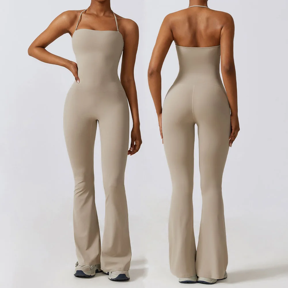 Custom Logo Gym One Piece Breathable Workout Slim Flares Pants Rumpers Women Jumpsuits Playsuits Bodysuit Yoga for Girls