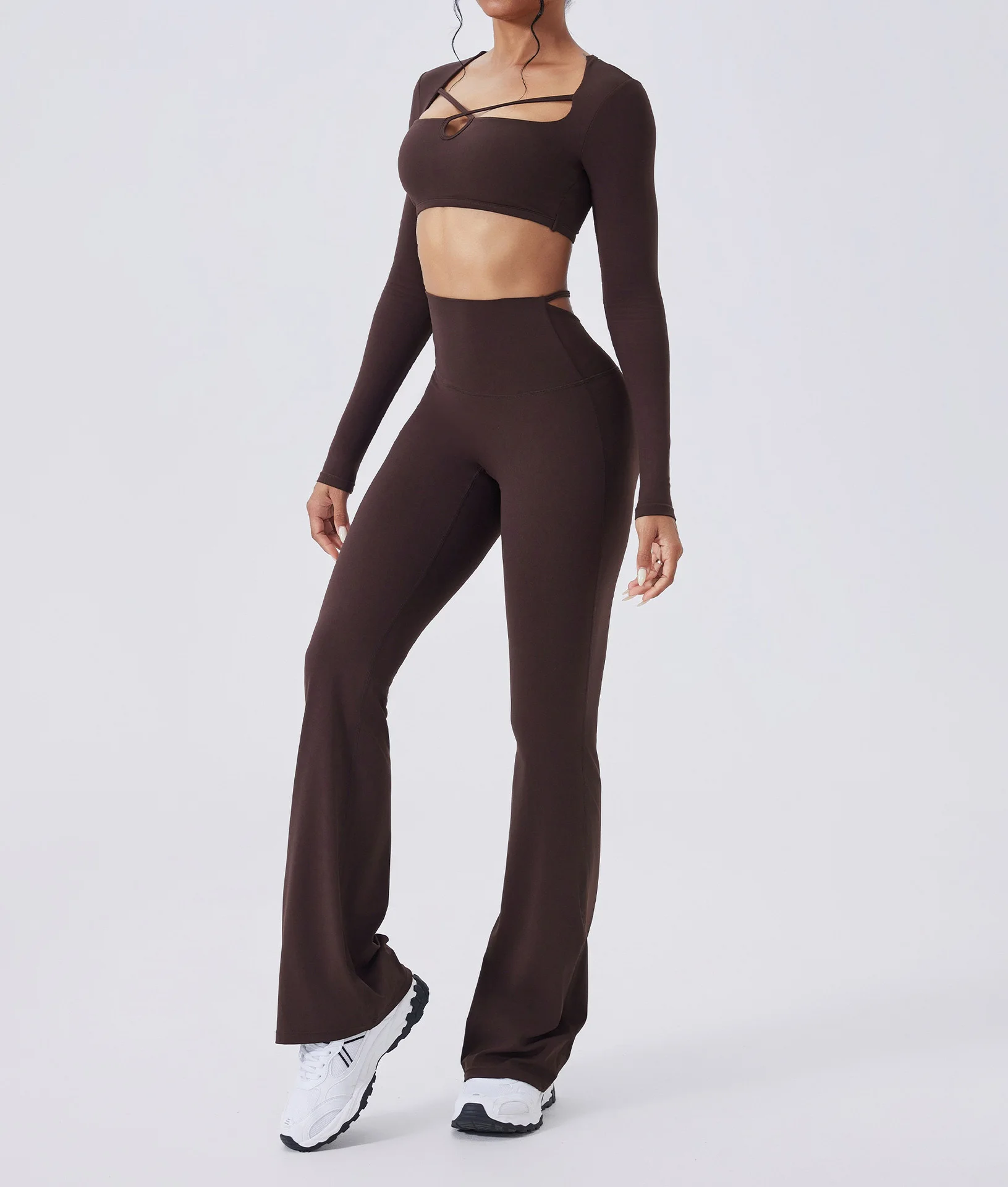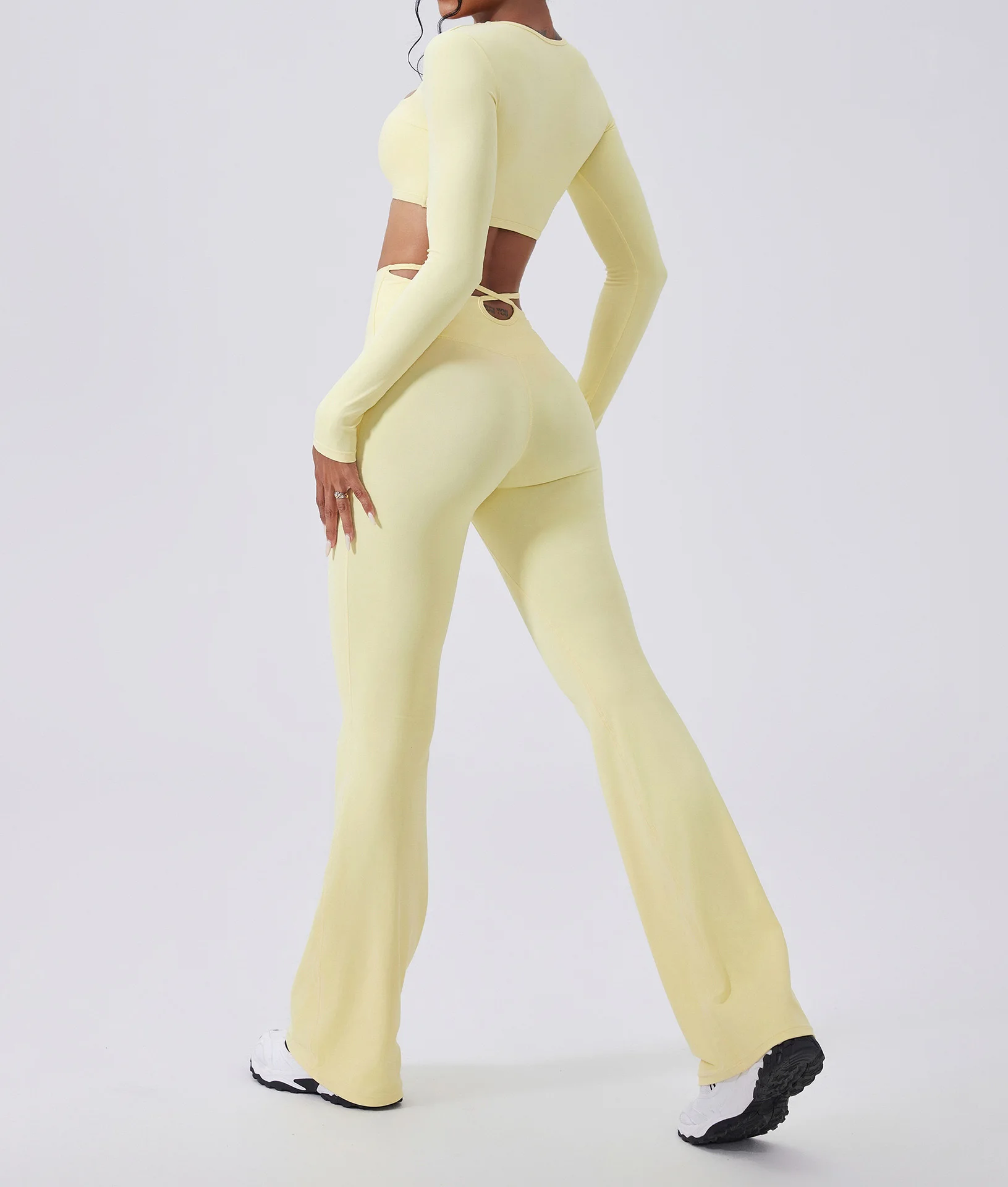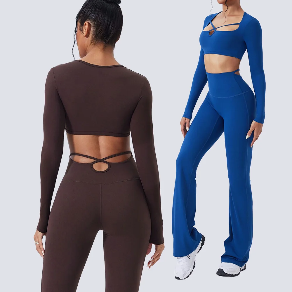 Custom Logo GYM Sport Wear Fitness Workout Long Sleeve Top Women Yoga Flares Pants Set Yoga Legging for Women Girls