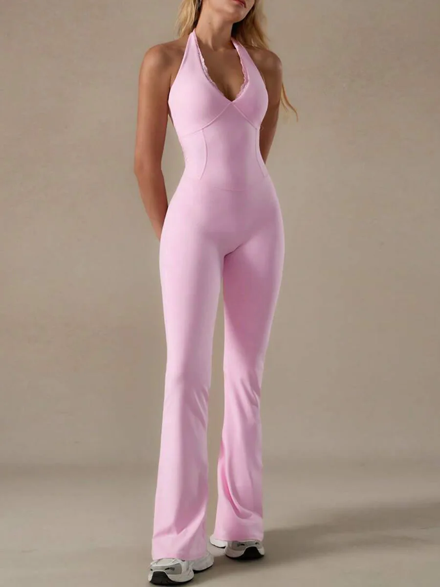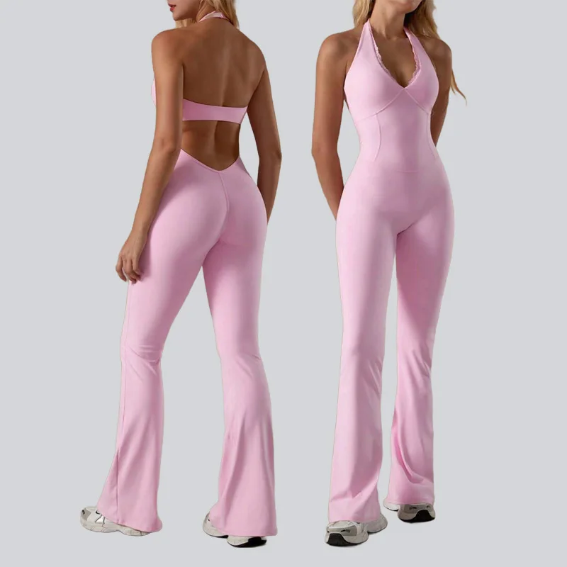 Custom Logo One Piece Ladies Activewear GYM Fitness Sport Yoga Jumpsuit Flares Pants Female Women Jumpsuit Playsuits Bodysuit