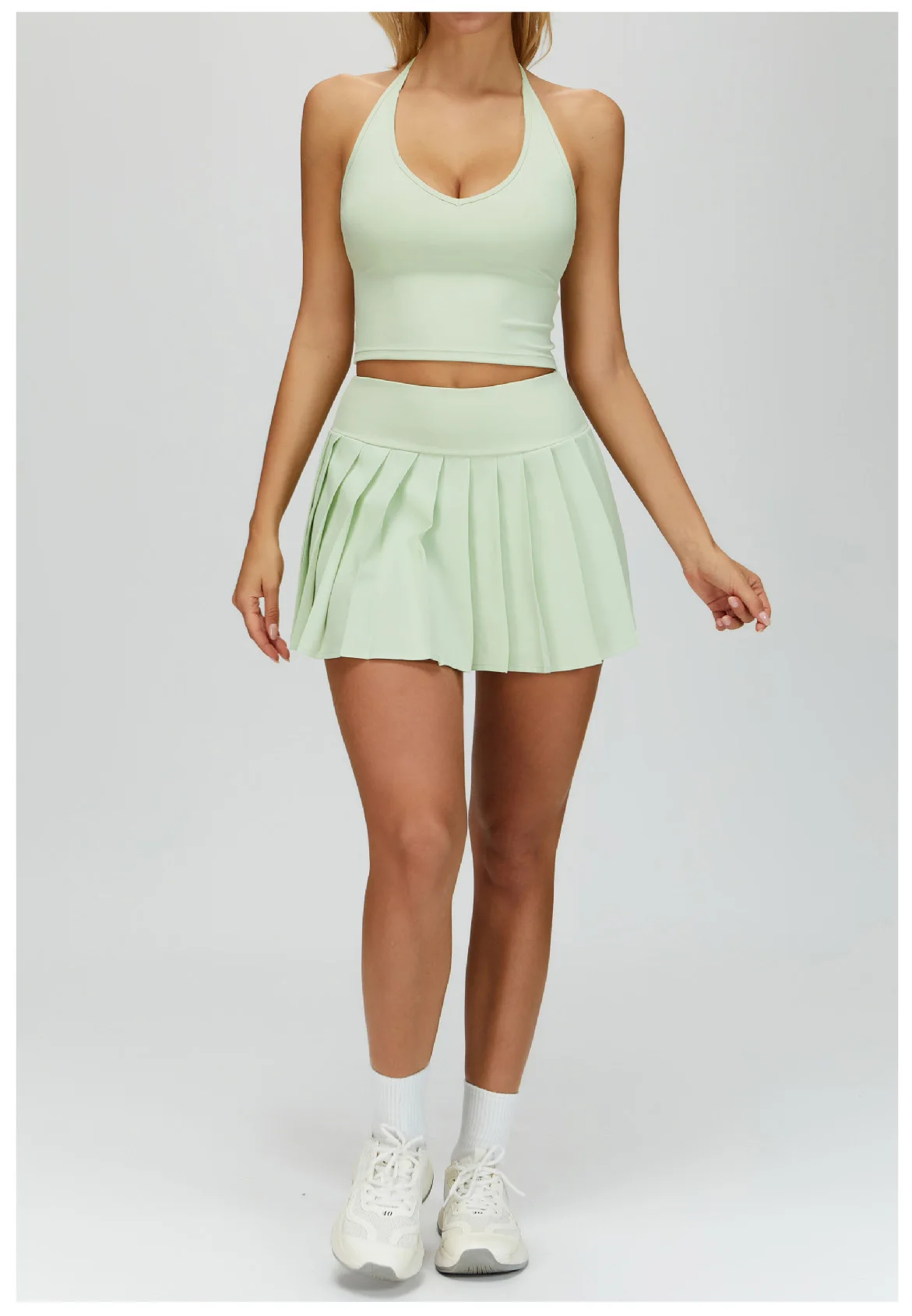 Custom LOGO GYM Fitness Slim Sport Wear Women Vest Tank Top Elegant Yoga Golf Skirt for Women Tennis Skirt Set for Girl Ladies