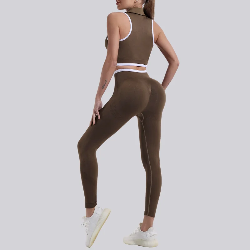 Women's Zipper Sleeveless Running Bra Fitness Long Pants Sports Set New Seamless Solid Quick Dry Sportswear
