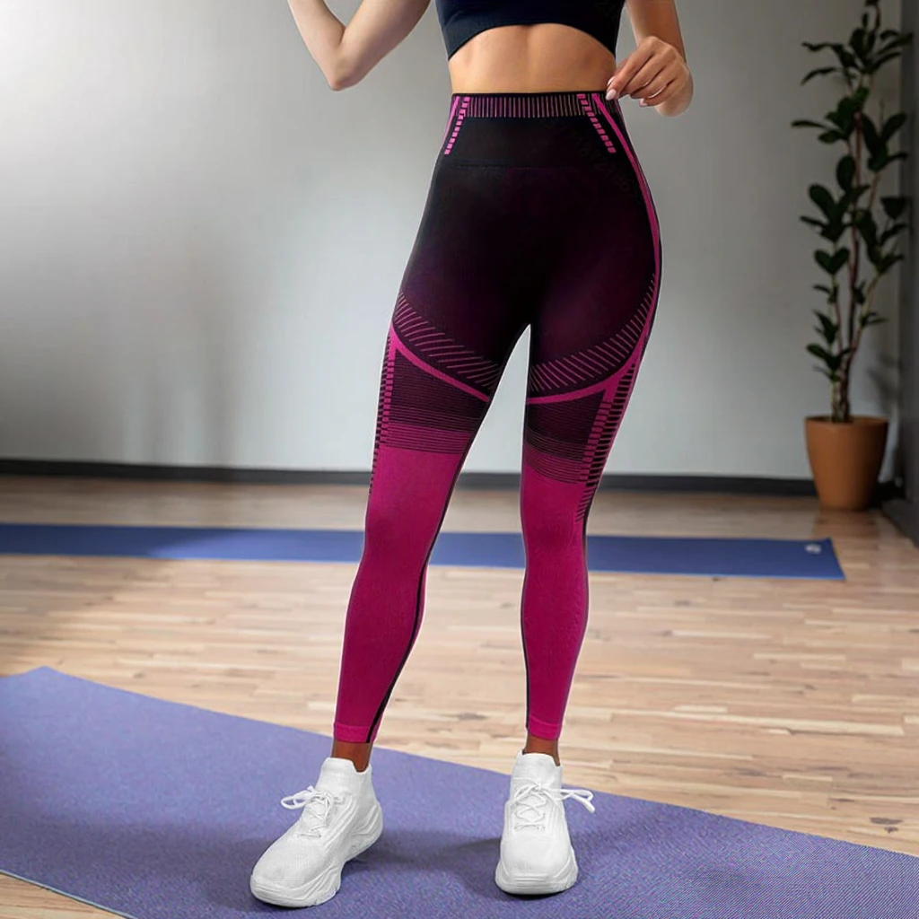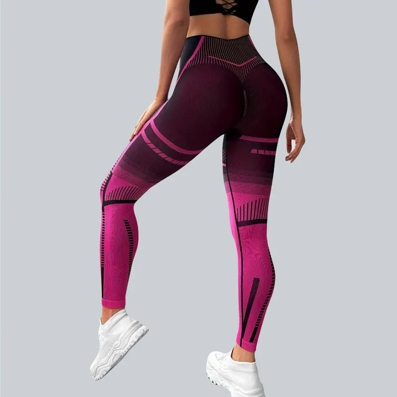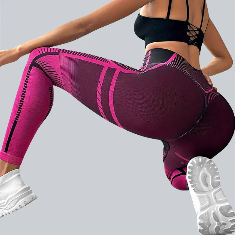 Customized Women's Yoga Pants With Color-Block Design Tight Breathable High Waist Elastic Seamless Sports Leggings