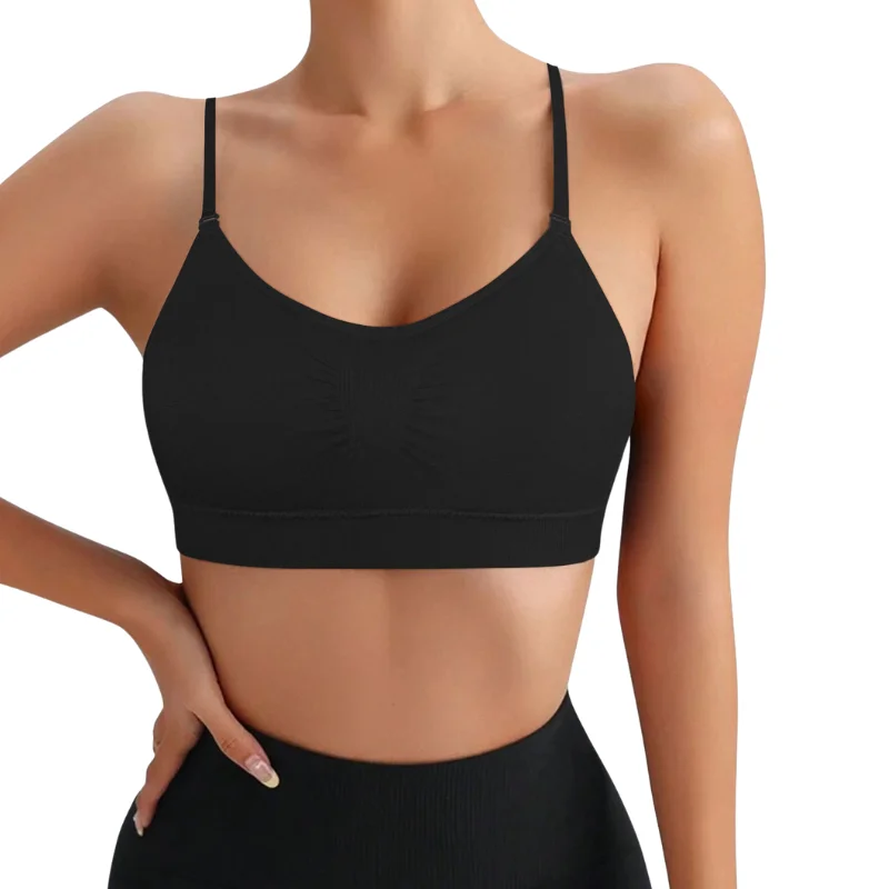 Seamless Breathable High Elasticity Shockproof Sports Yoga Bra for Women Adjustable Thin Straps with Adjusted Pads Gymwear