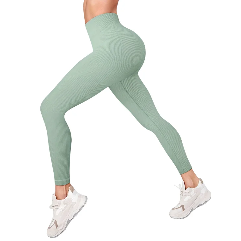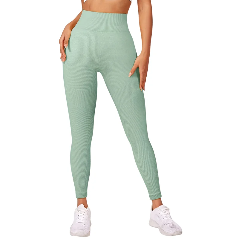 Customized Yoga Pants Seamless Knitted Tight Fitting Breathable Quick Dry High Waist Tummy Control Sports Leggings Gymwear