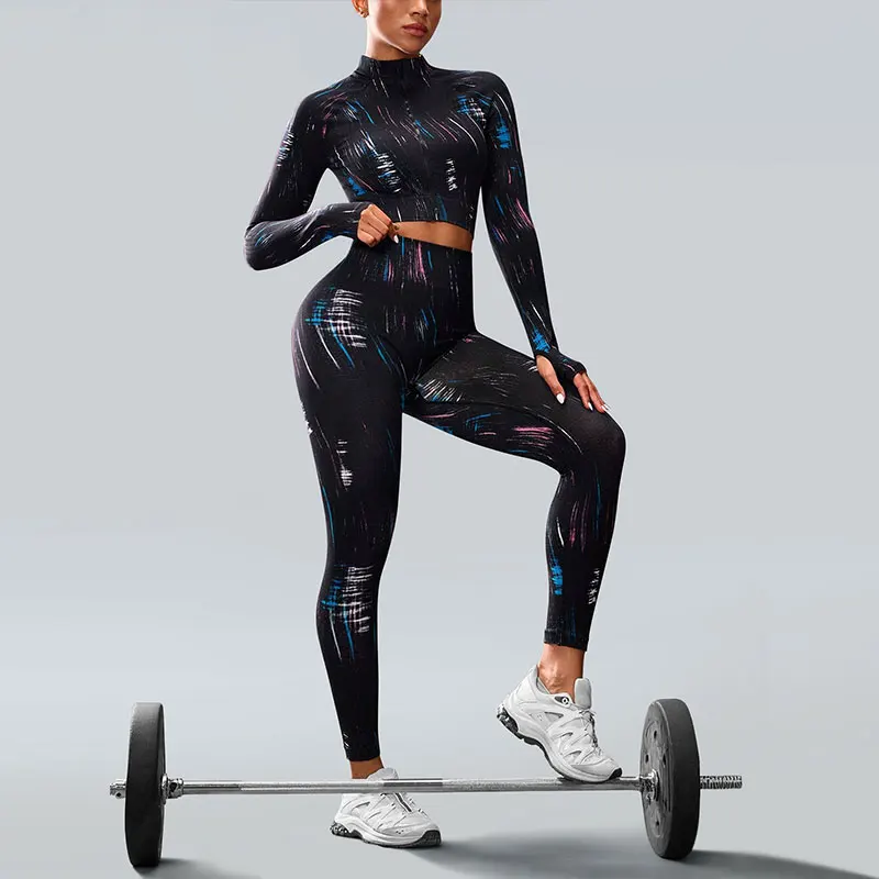 Customized Women's Yoga Sets New Style Long Sleeve Zipper Top and High Elastic Tight Pants Sports 2 Pcs Sets
