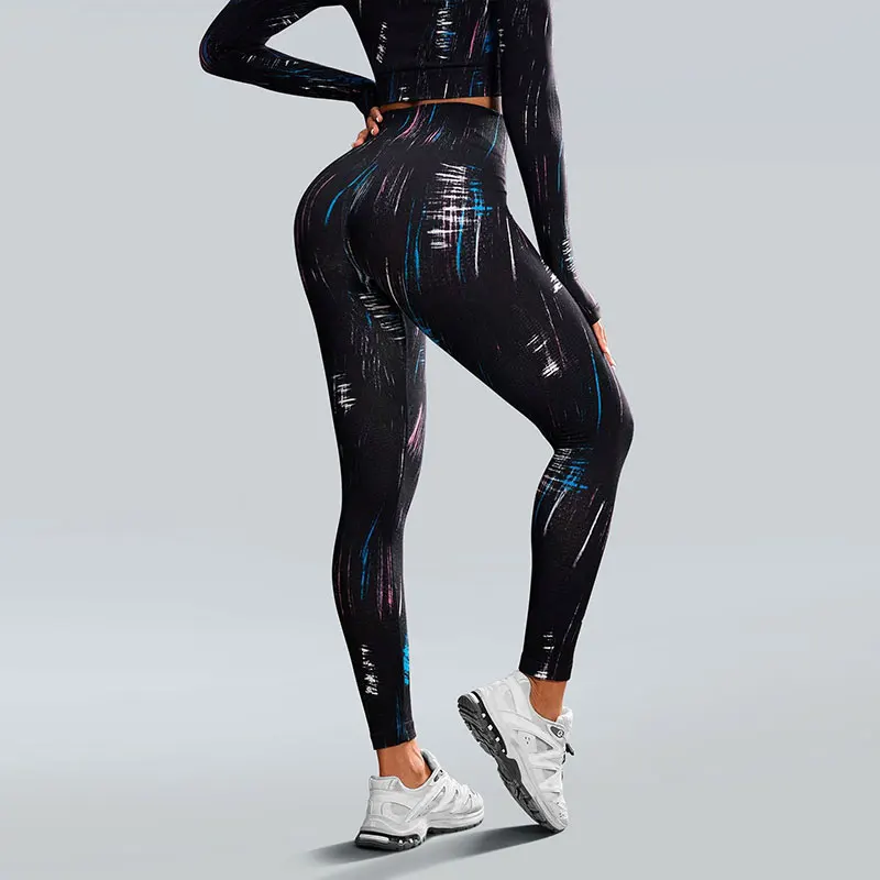 Customized Woman's Yoga Pants Seamless Painted Breathable High Waist High Elastic Tummy Control Sports Tights Outwear Leggings