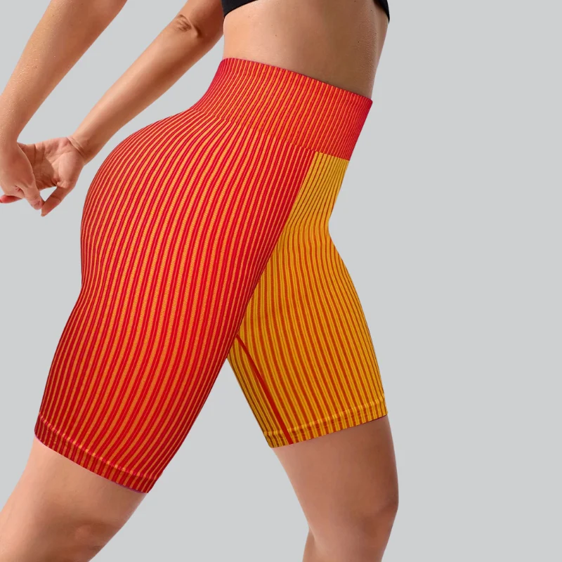 Customized Seamless Yoga Shorts Striped Color Block Textured High Waist High Stretch Tight Tummy Control Sports Wear for Women