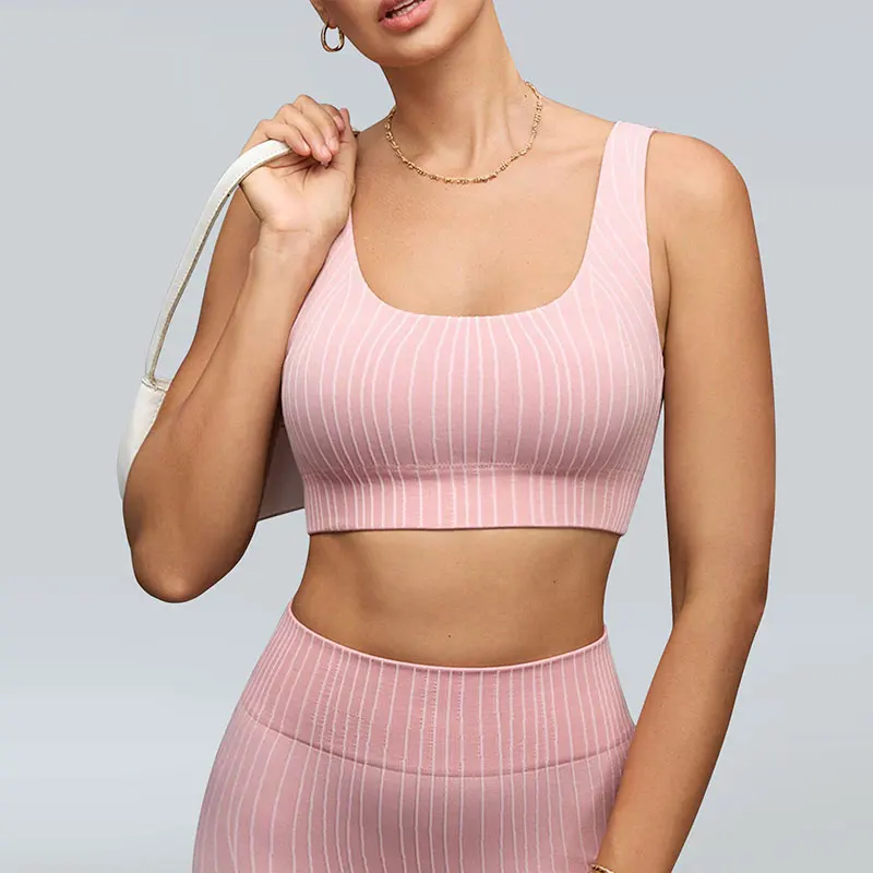 Customized Women's Yoga Bra Textured Striped Beautiful Back Twist Design Breathable Elastic Underwear for Workout Sports