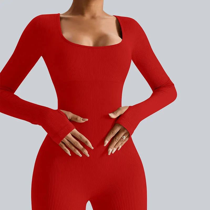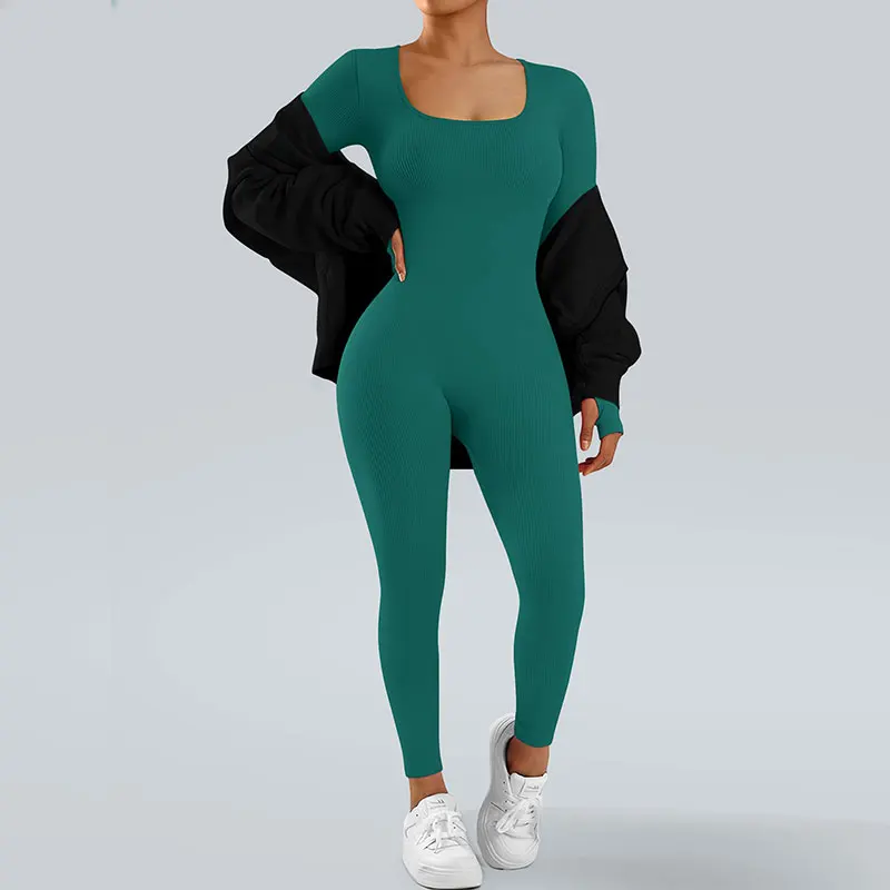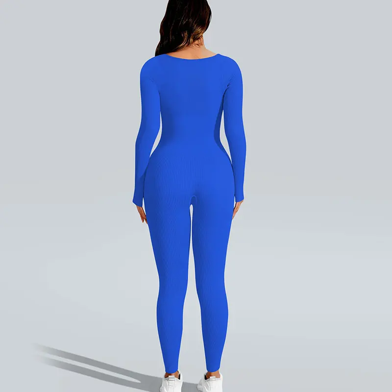 Customized Women's One Piece Jumpsuit Breathable Long Sleeve Tight Fitting High Elasticity Full Length Sports Yoga Bodysuit