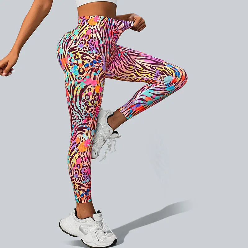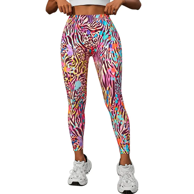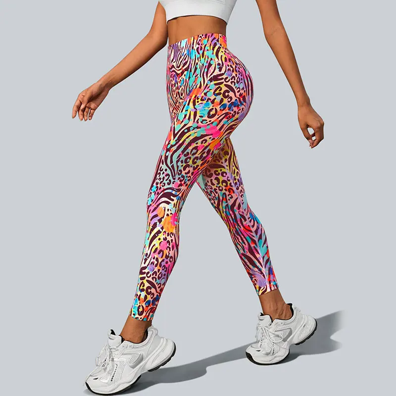 Hot Selling Women's Yoga Pants Printed Breathable Sweat Absorbent Butt Lifting Tight Sports Outer Wear Long Pants for Women