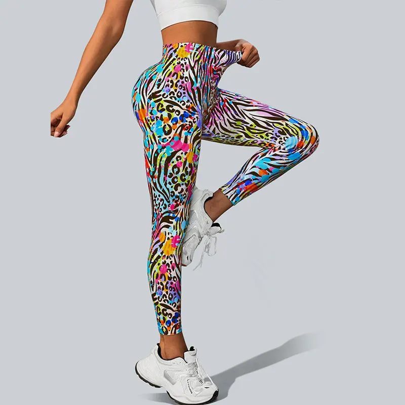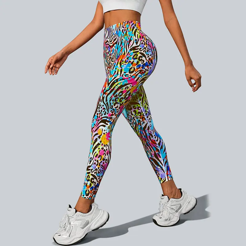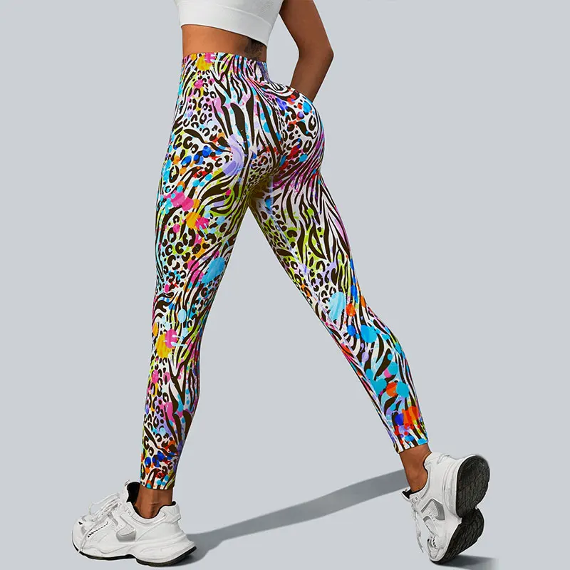 Seamless Yoga Pants Painted Print High Elastic High Waist Butt Lifting Tight Sports Outer Wear Long Pants for Women