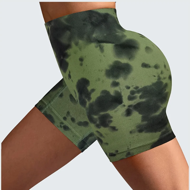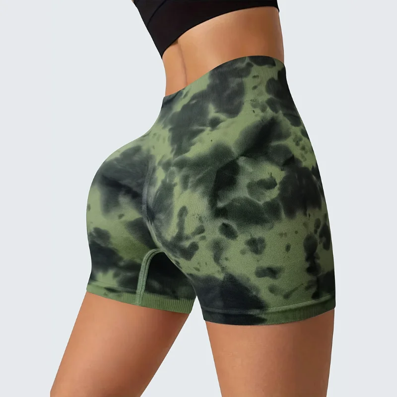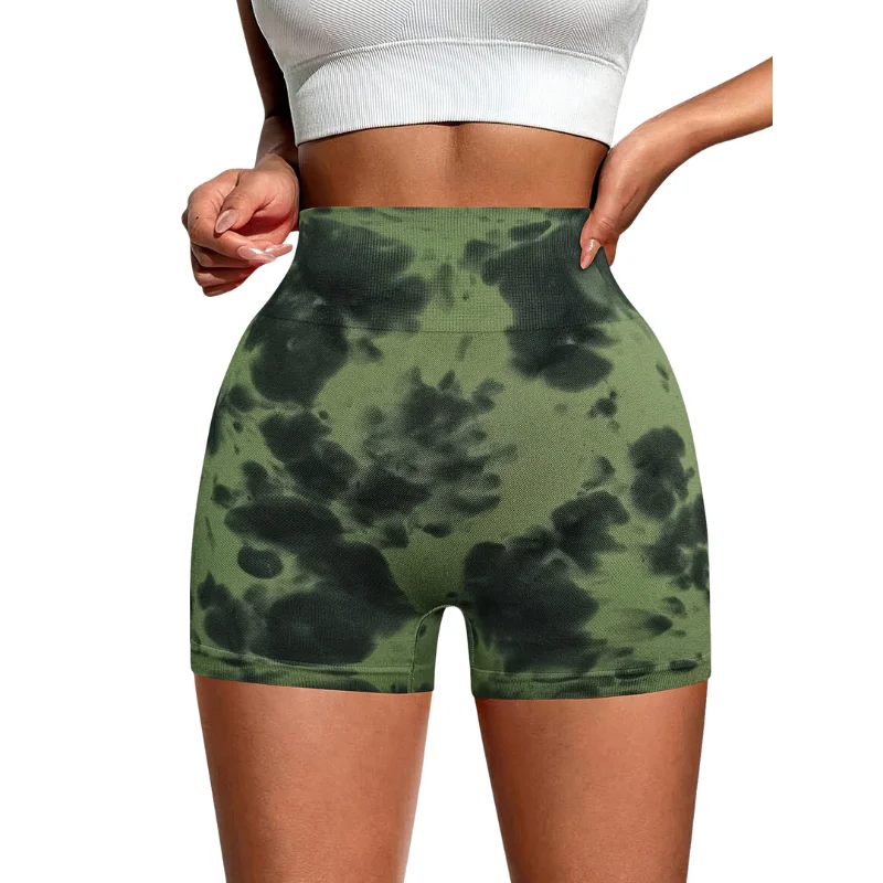 Contrast Color Tie Dye Seamless Tight Breathable High Waist High Elastic Sweat Absorbing Yoga Shorts for Woman